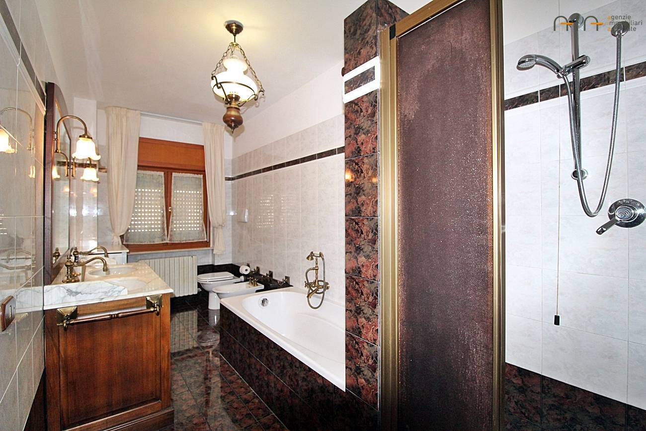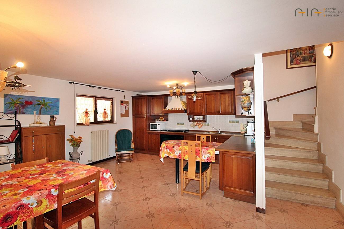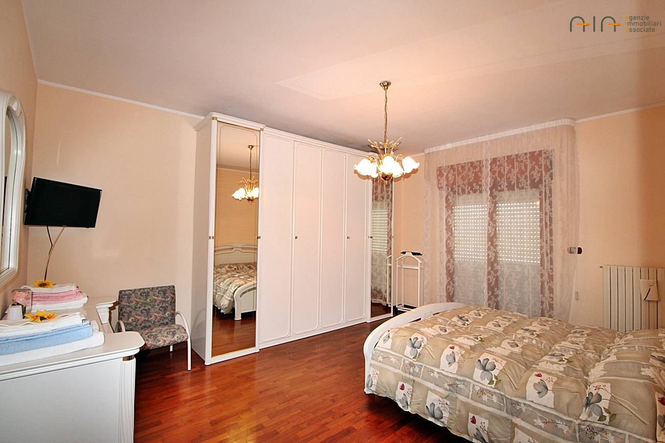 Villetta a schiera disposta su 4 livelli, delle dimensioni totali di mq 300 circa, composta da: piano seminterrato completo di ampio rustico con camino e cucina a vista, bagno, locale tecnico con caldaia a norma e ampio garage di mq 40 circa, oltre scala di accesso ai piani superiori; piano terreno composto da ingresso su ampio e luminoso soggiorno, cucina abitabile, bagno con finestra e ampi balconi, oltre scala di accesso al piano primo, composto da tre camere da letto matrimoniale, due bagni di cui uno esclusivo in camera e bagno di servizio completo di vasca e doccia, oltre a balconi. Al piano superiore avente altezza max di circa 2,00 mt troviamo un ampio locale con possibilità di utilizzarlo come studio o ulteriore camera. La villetta in oggetto é inoltre fornita di un giardino privato per totali 60 mq circa, in parte pavimentato ed in parte piantumato. L'unità immobiliare in oggetto si presenta in ottime condizioni, con pavimentazione in monocottura nel reparto giorno, parquet nel reparto notte, infissi in legno con doppio vetro, impianto di allarme, impiantistica completamente a norma. L'unità si presenta quindi in condizioni perfettamente utilizzabili. Localizzata in posizione semicentrale, ma non distante dai servizi principali.
