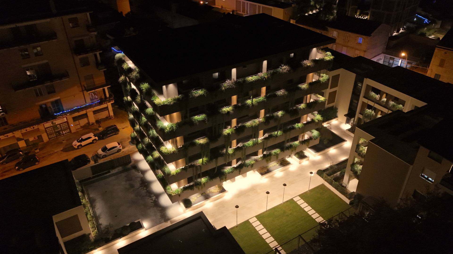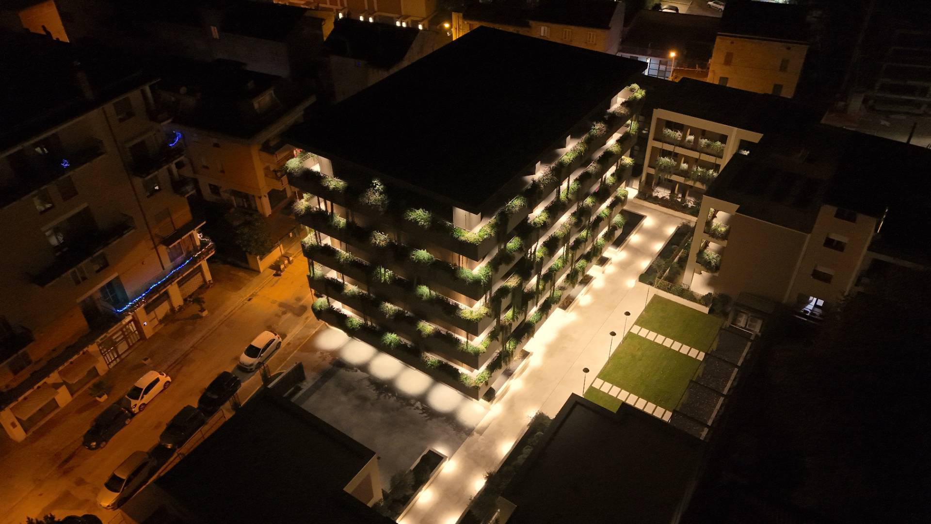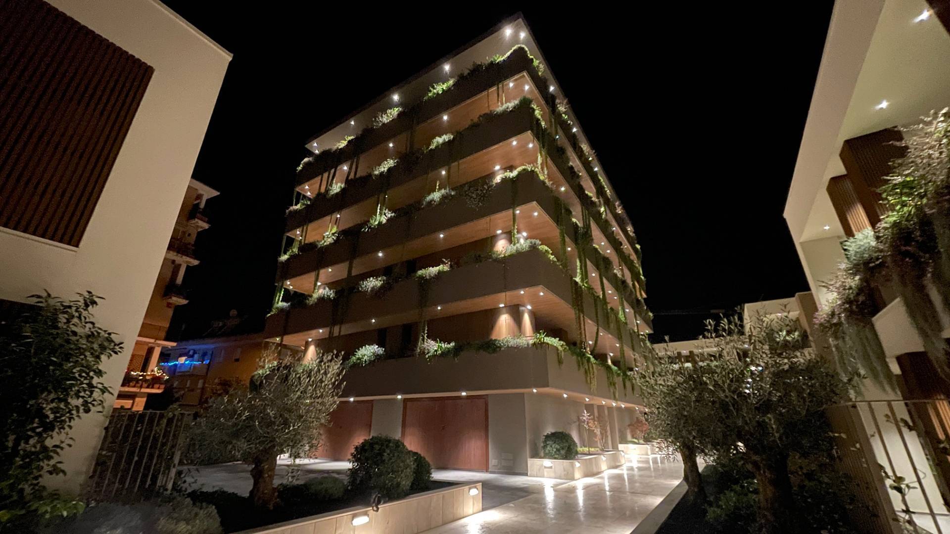 Posizionato in una zona centrale, l'Appartamento è a breve distanza da tutti i principali servizi, come scuole, banche, farmacie e supermercati, oltre che a circa 650 metri dal mare. Una soluzione ideale per chi cerca un'abitazione di prestigio con un design unico e raffinato, valorizzata dalla suggestiva illuminazione notturna del complesso.