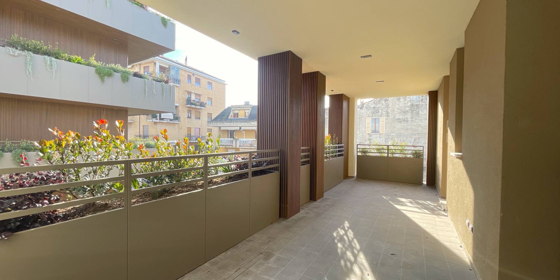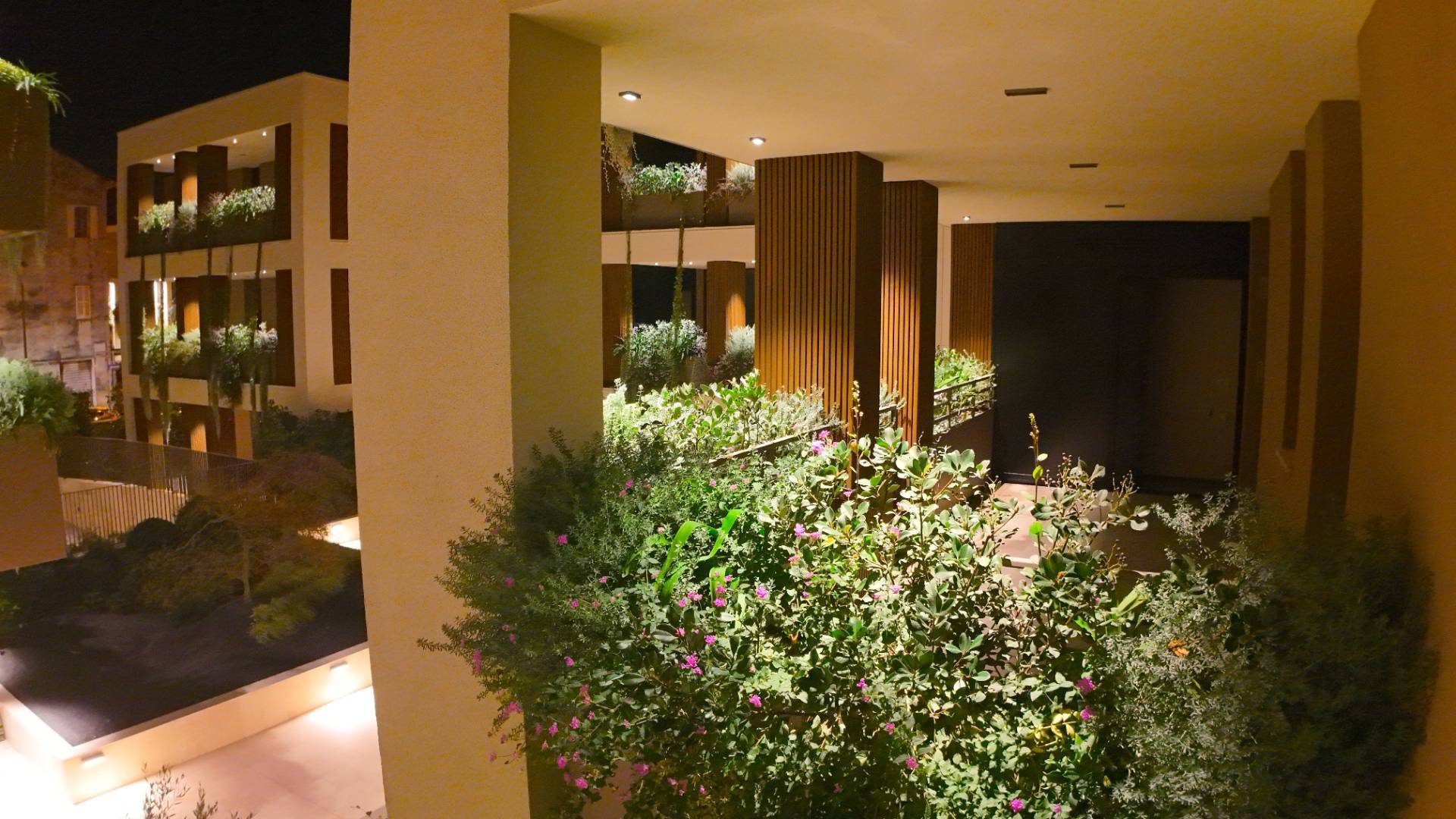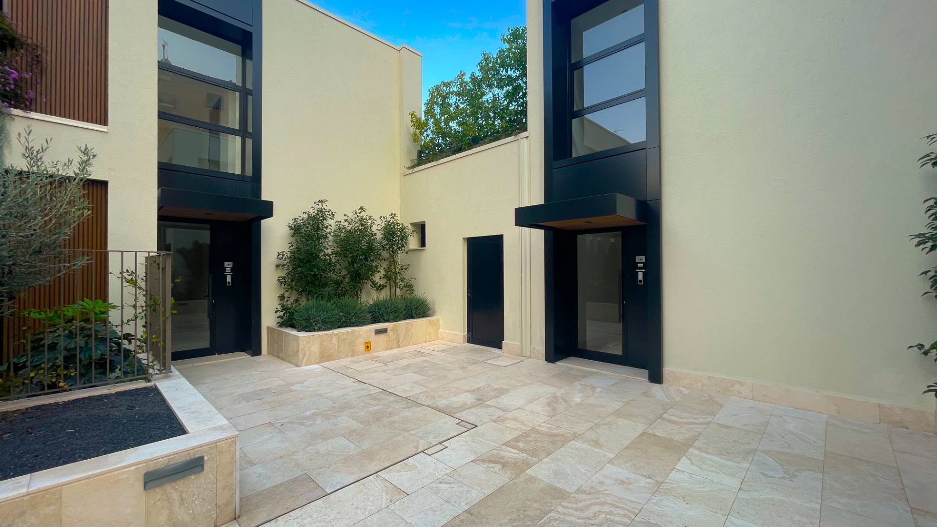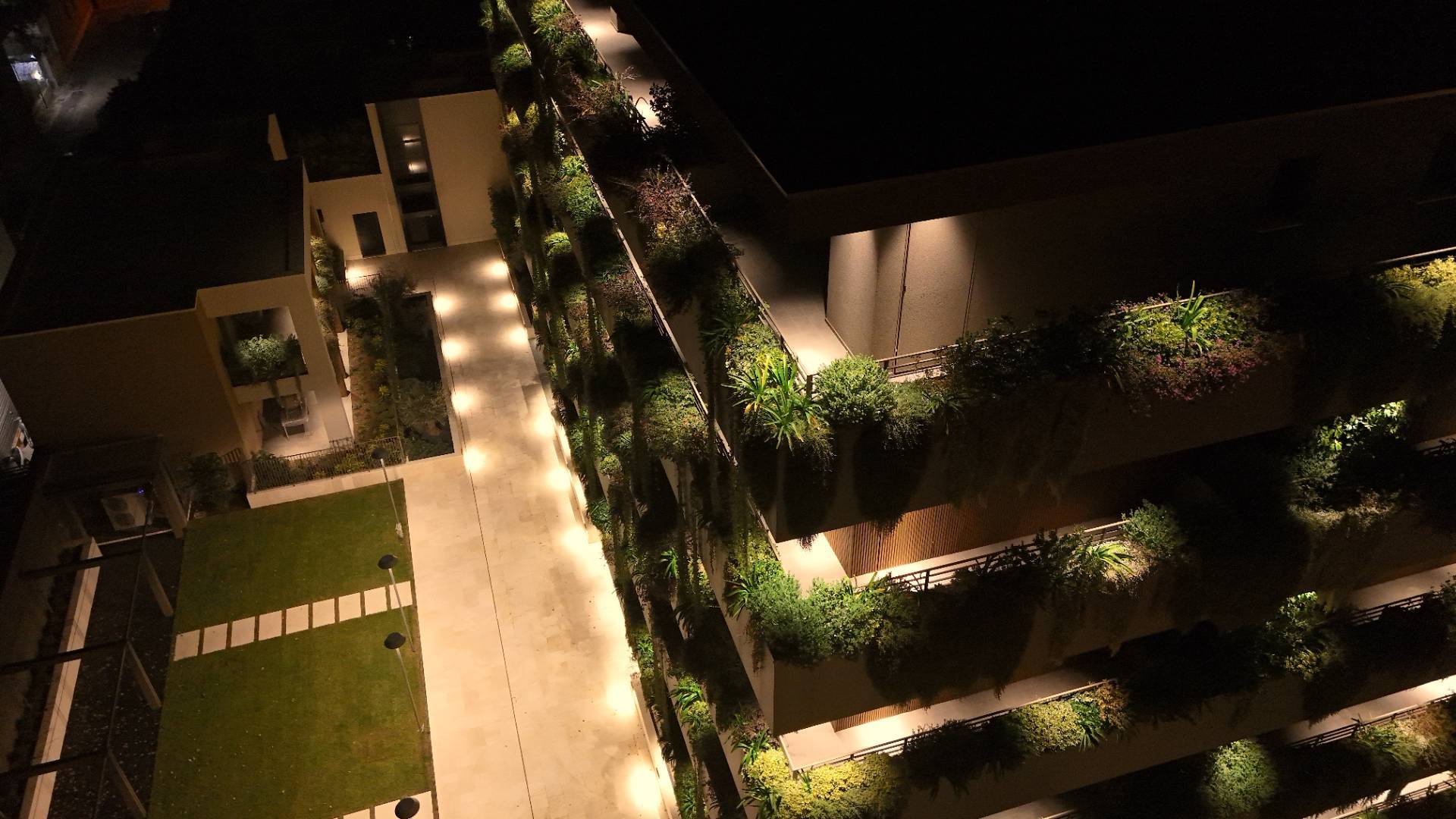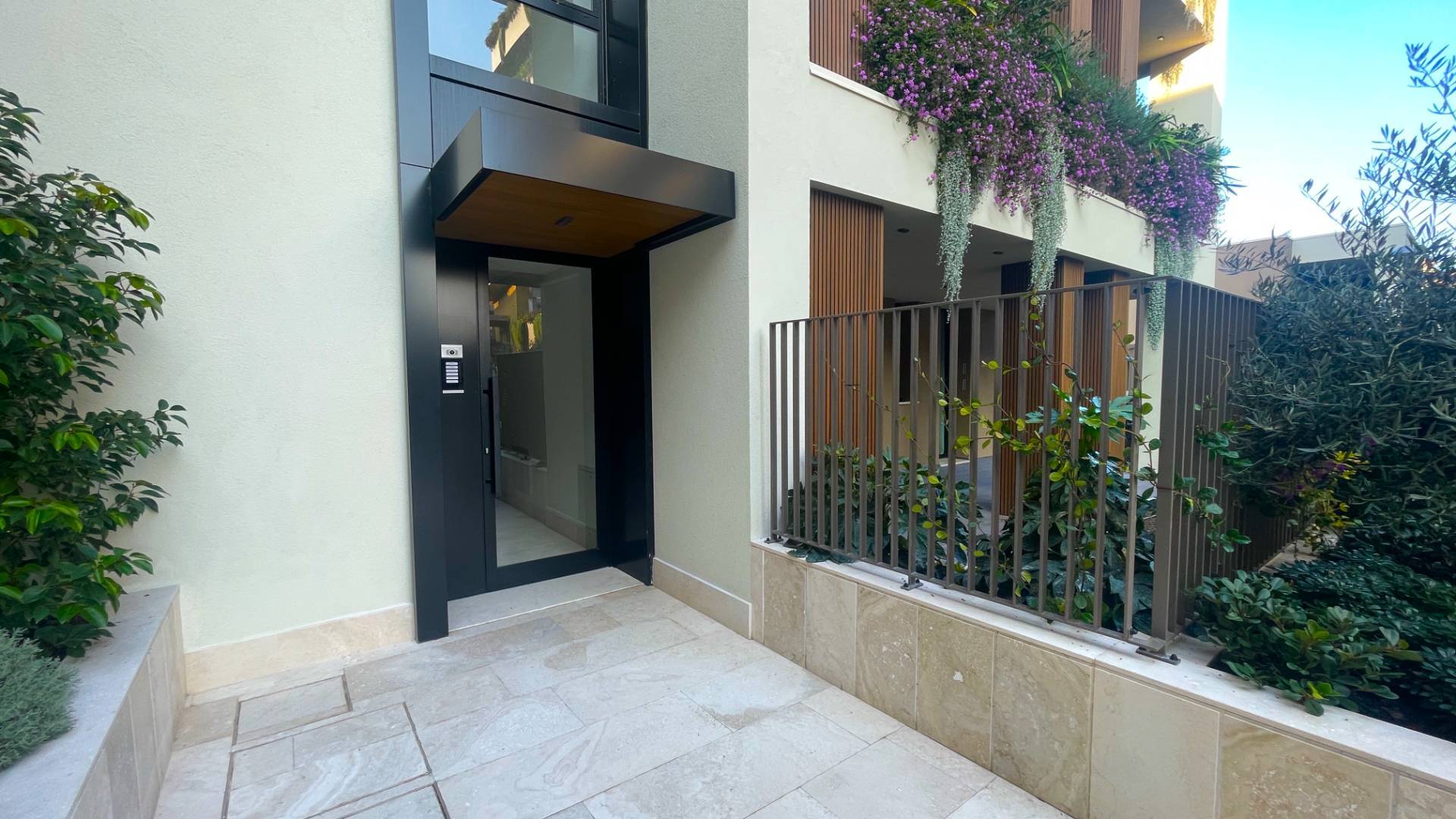 L'Appartamento si trova in una piccola palazzina di tre piani, parte del prestigioso complesso residenziale Caroselli Garden House. Questo complesso esclusivo è accessibile solo ai residenti tramite tastierino numerico all'ingresso ed è immerso in un magnifico giardino interno, arricchito da piante ornamentali disposte su balconate e logge. L'irrigazione del verde è gestita da un sistema centralizzato con accumulo d'acqua.