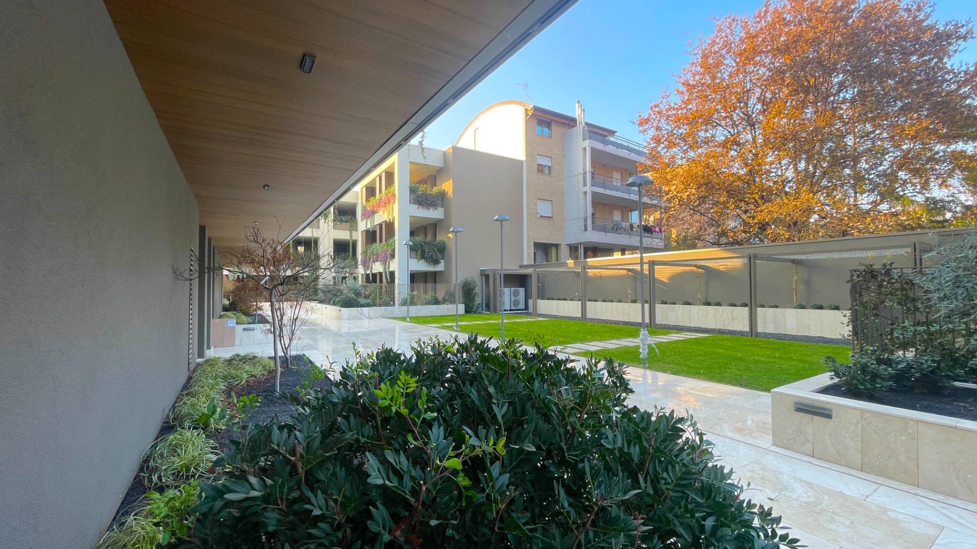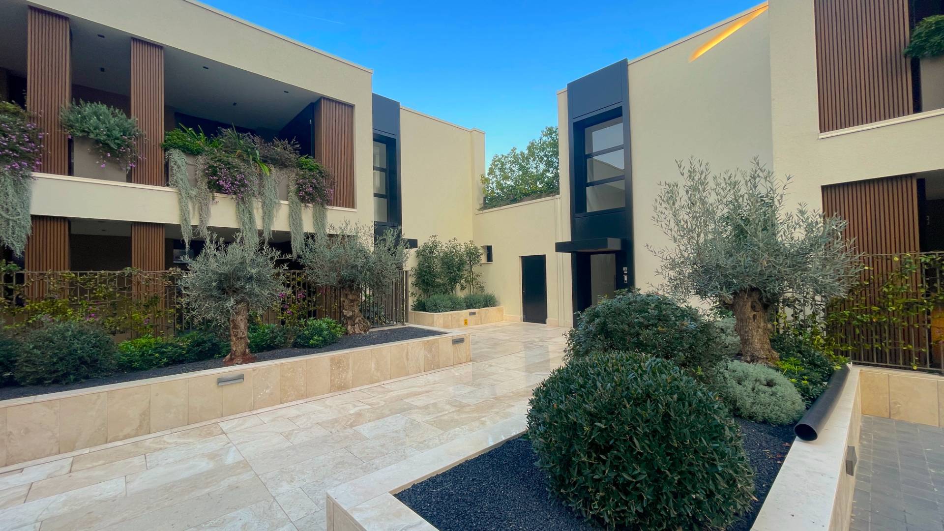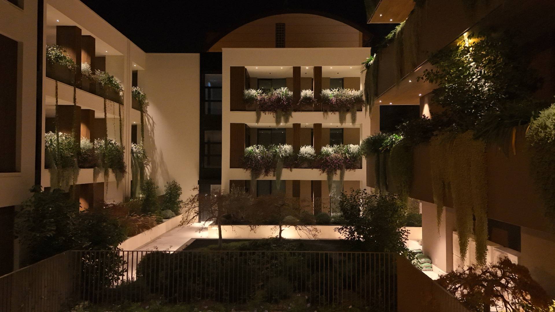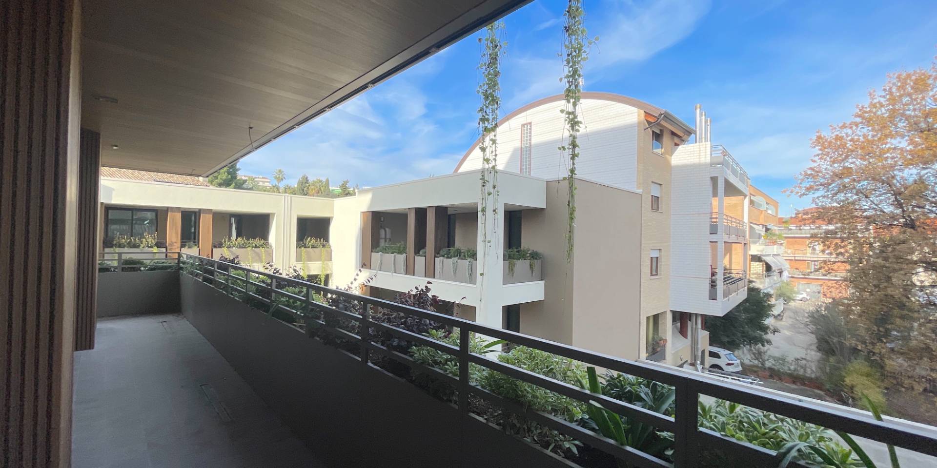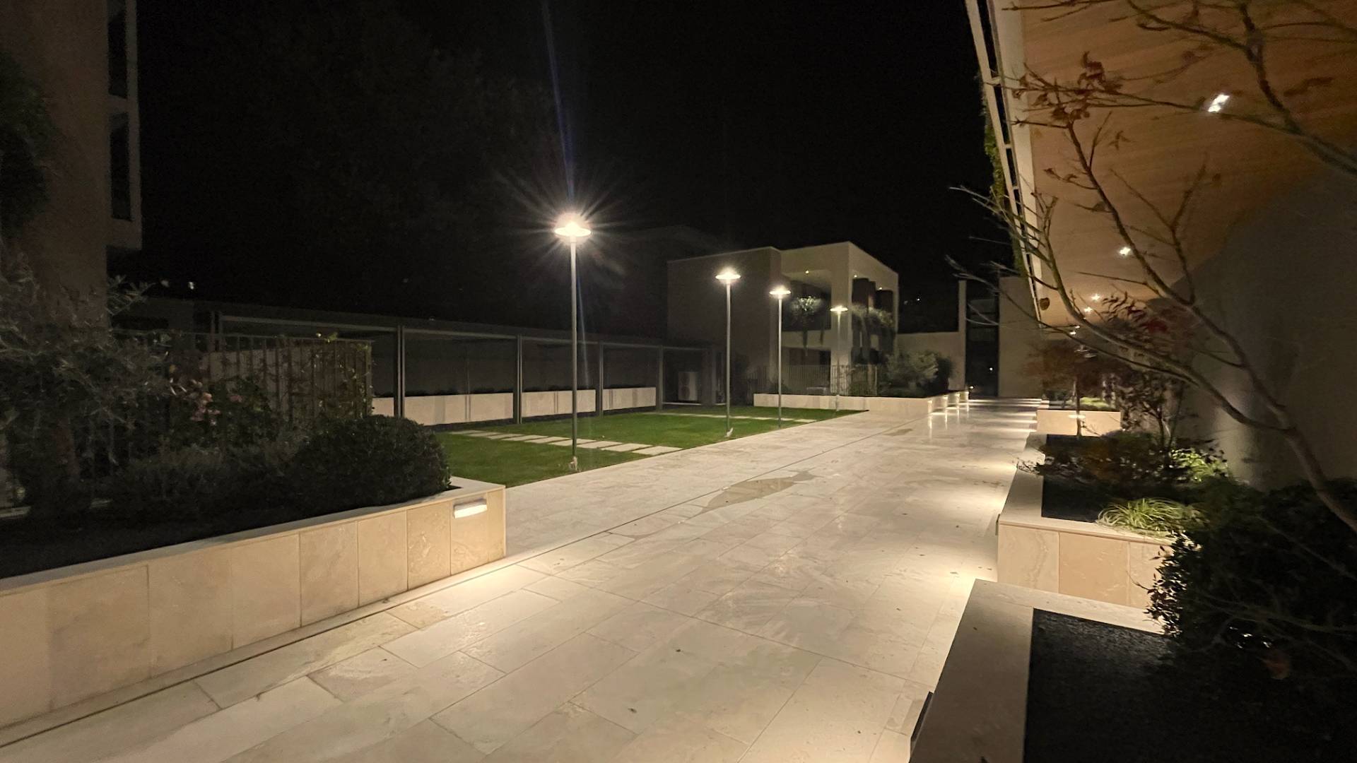 L'Appartamento si trova in una piccola palazzina di tre piani, parte del prestigioso complesso residenziale Caroselli Garden House. Questo complesso esclusivo è accessibile solo ai residenti tramite tastierino numerico all'ingresso ed è immerso in un magnifico giardino interno, arricchito da piante ornamentali disposte su balconate e logge. L'irrigazione del verde è gestita da un sistema centralizzato con accumulo d'acqua.