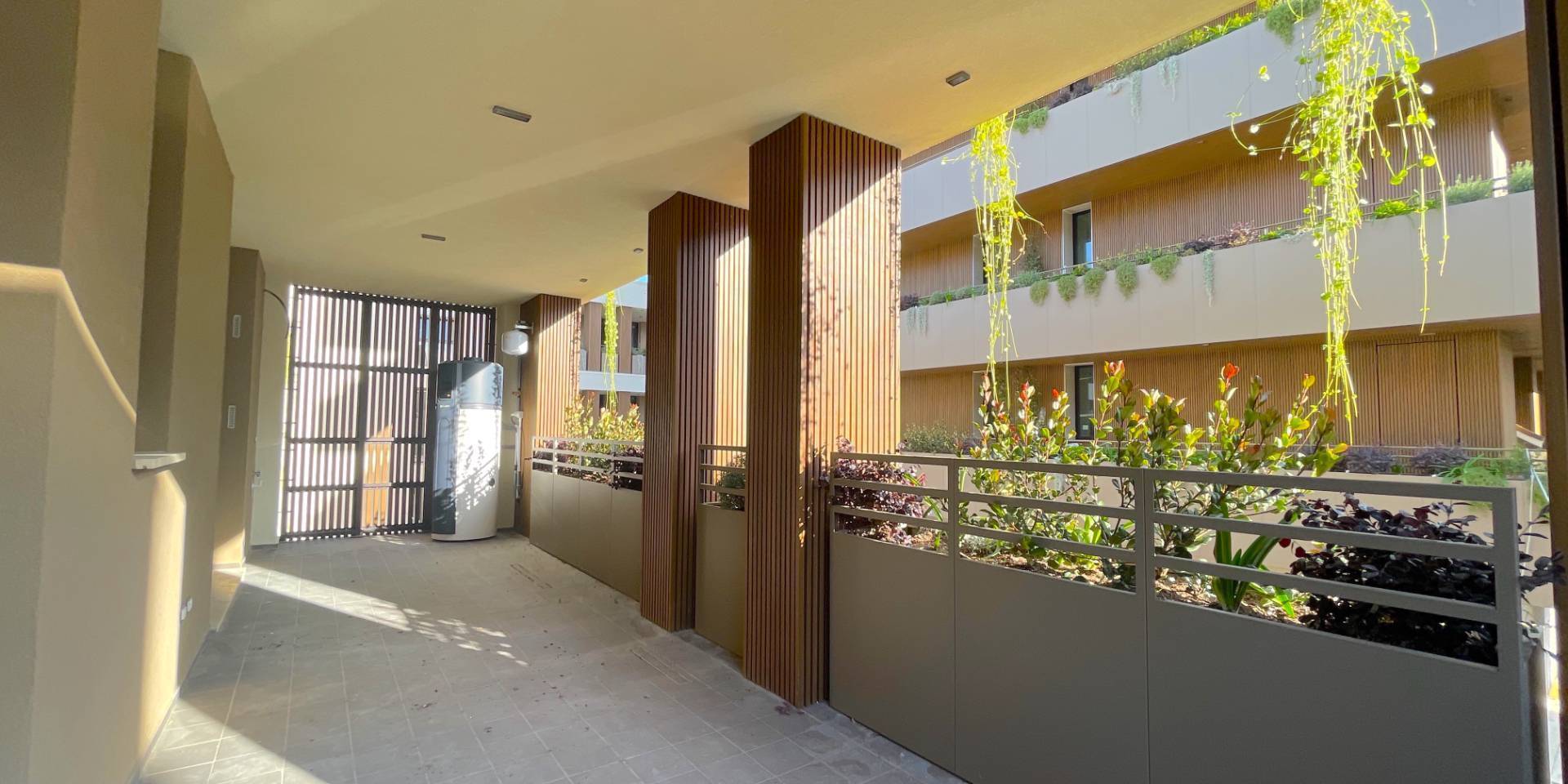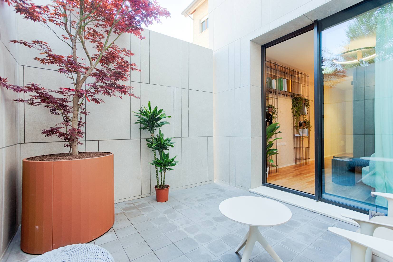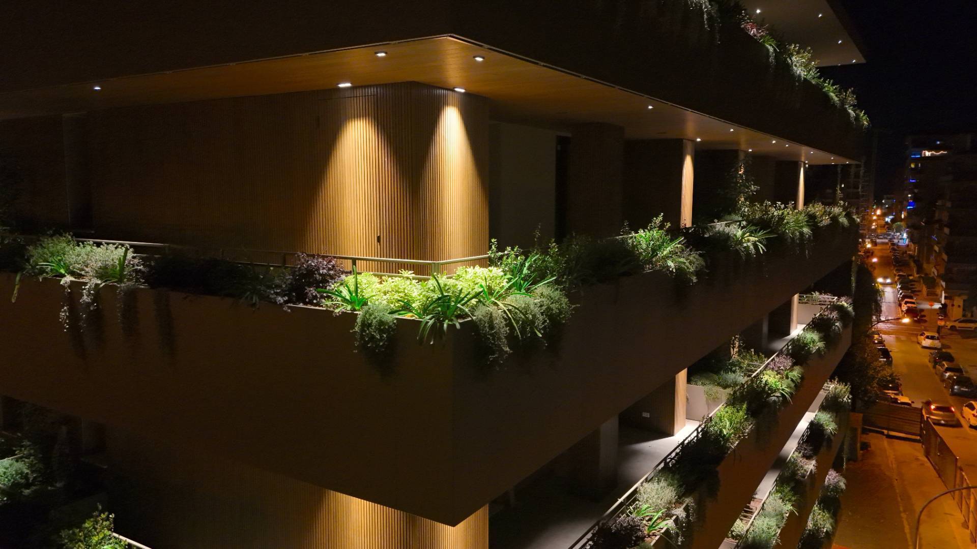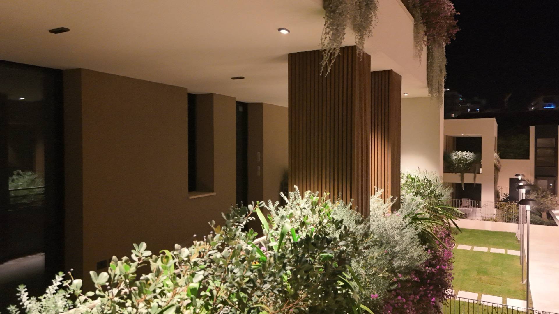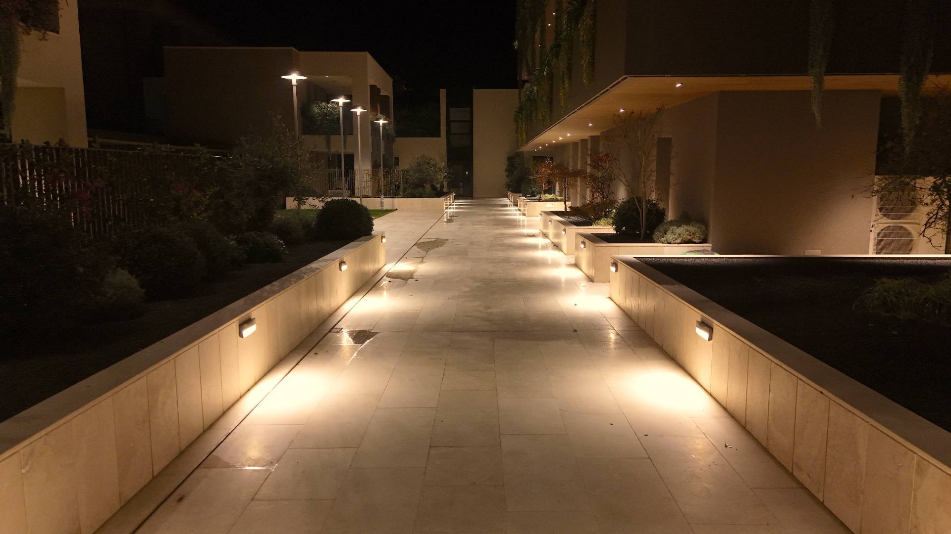 L'Appartamento si trova in una piccola palazzina di tre piani, parte del prestigioso complesso residenziale Caroselli Garden House. Questo complesso esclusivo è accessibile solo ai residenti tramite tastierino numerico all'ingresso ed è immerso in un magnifico giardino interno, arricchito da piante ornamentali disposte su balconate e logge. L'irrigazione del verde è gestita da un sistema centralizzato con accumulo d'acqua.
