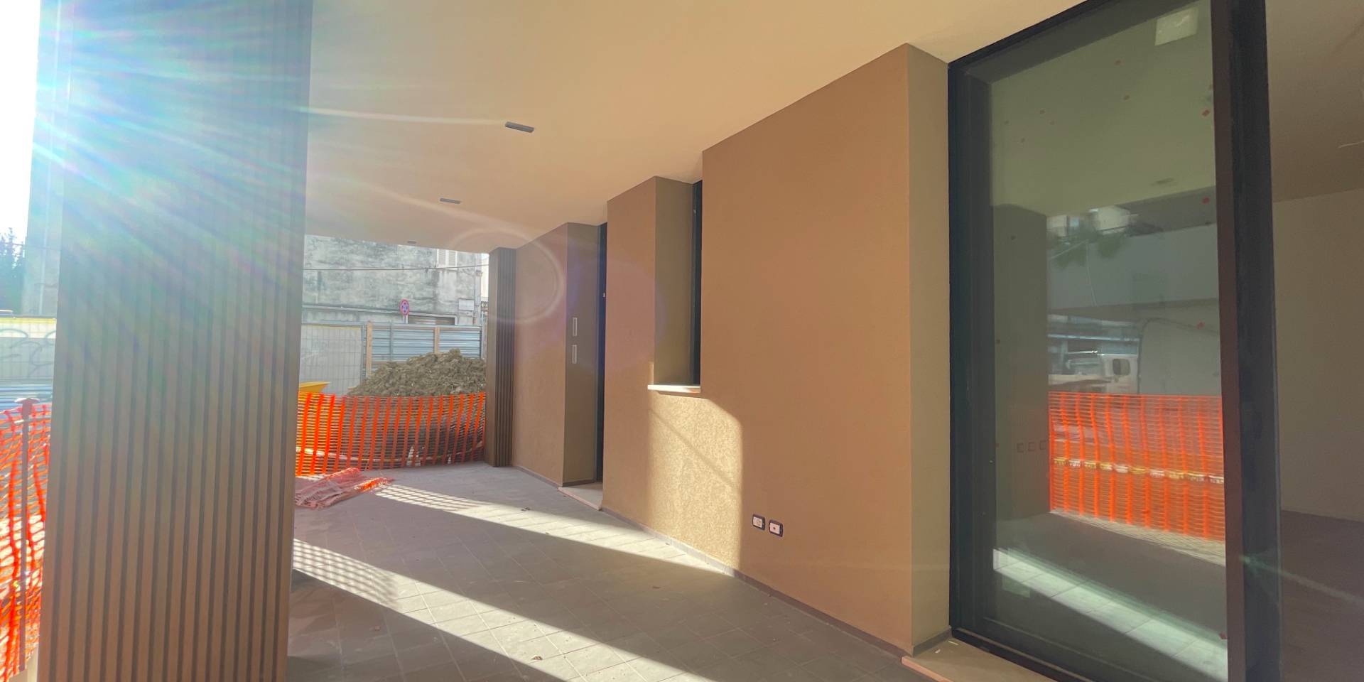 Il monolocale si trova in una piccola palazzina di tre piani, parte del prestigioso complesso residenziale Caroselli Garden House. Questo complesso esclusivo è accessibile solo ai residenti tramite tastierino numerico all'ingresso ed è circondato da un magnifico giardino interno, arricchito da piante ornamentali su balconate e logge. L'irrigazione è gestita da un sistema centralizzato con accumulo d'acqua.