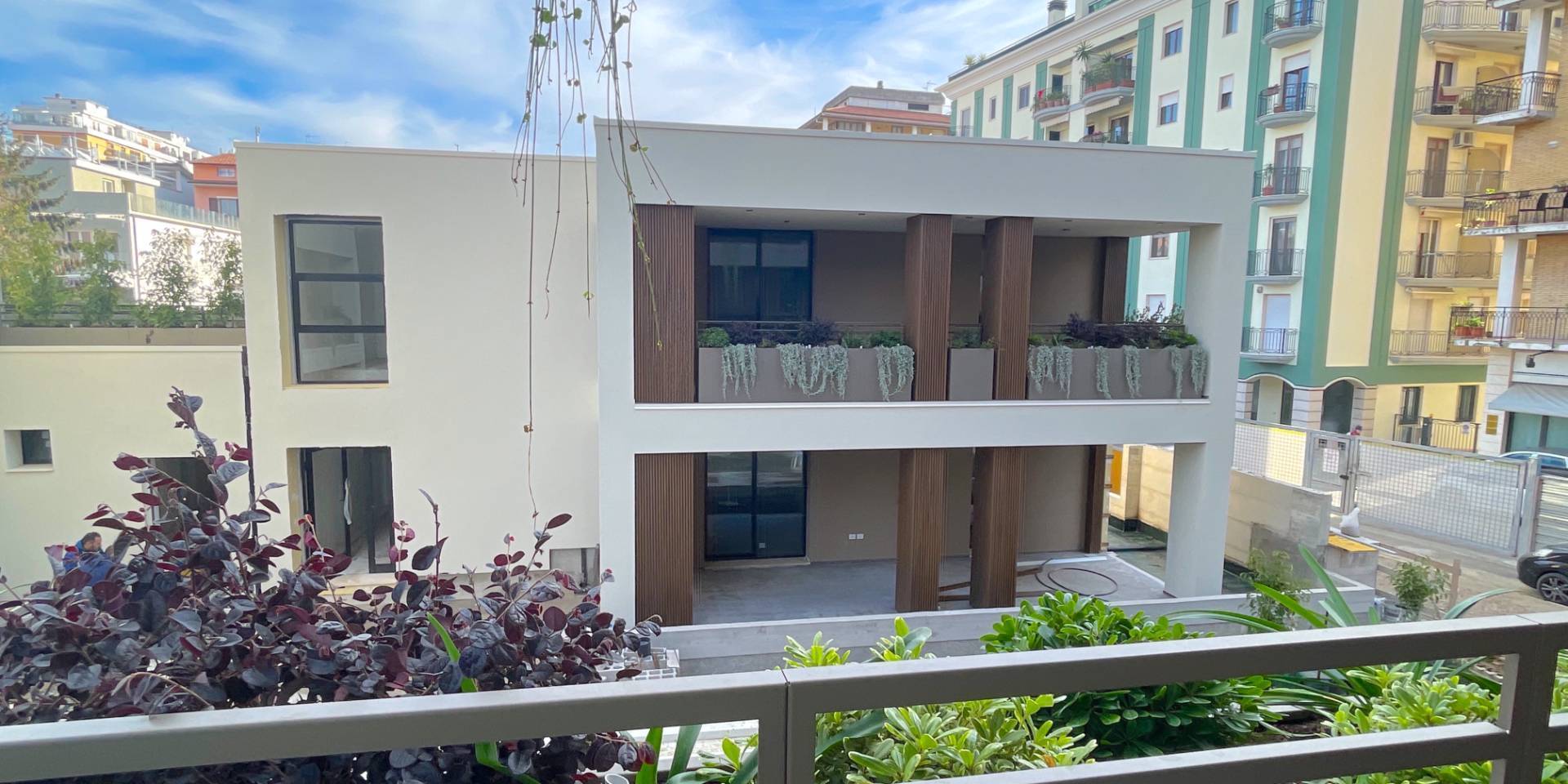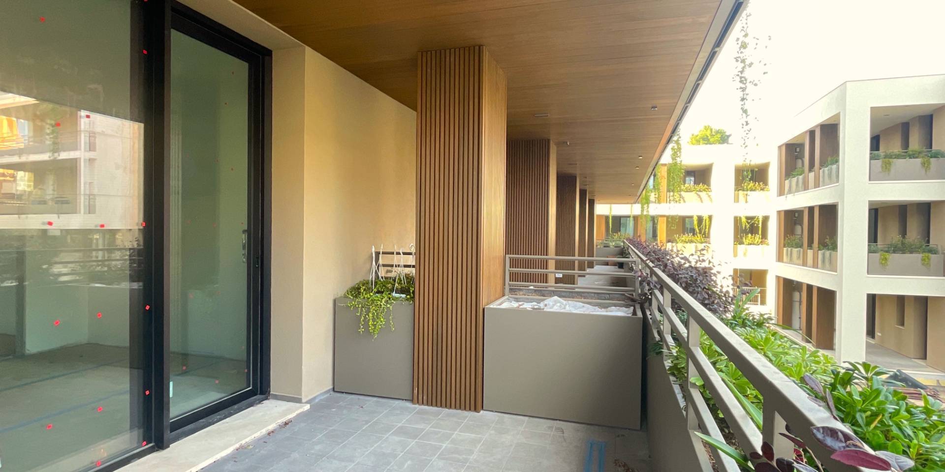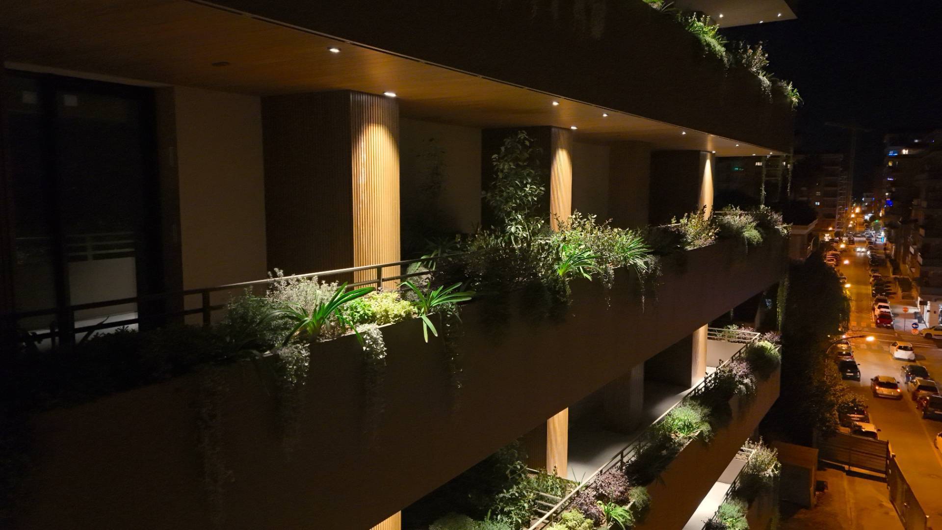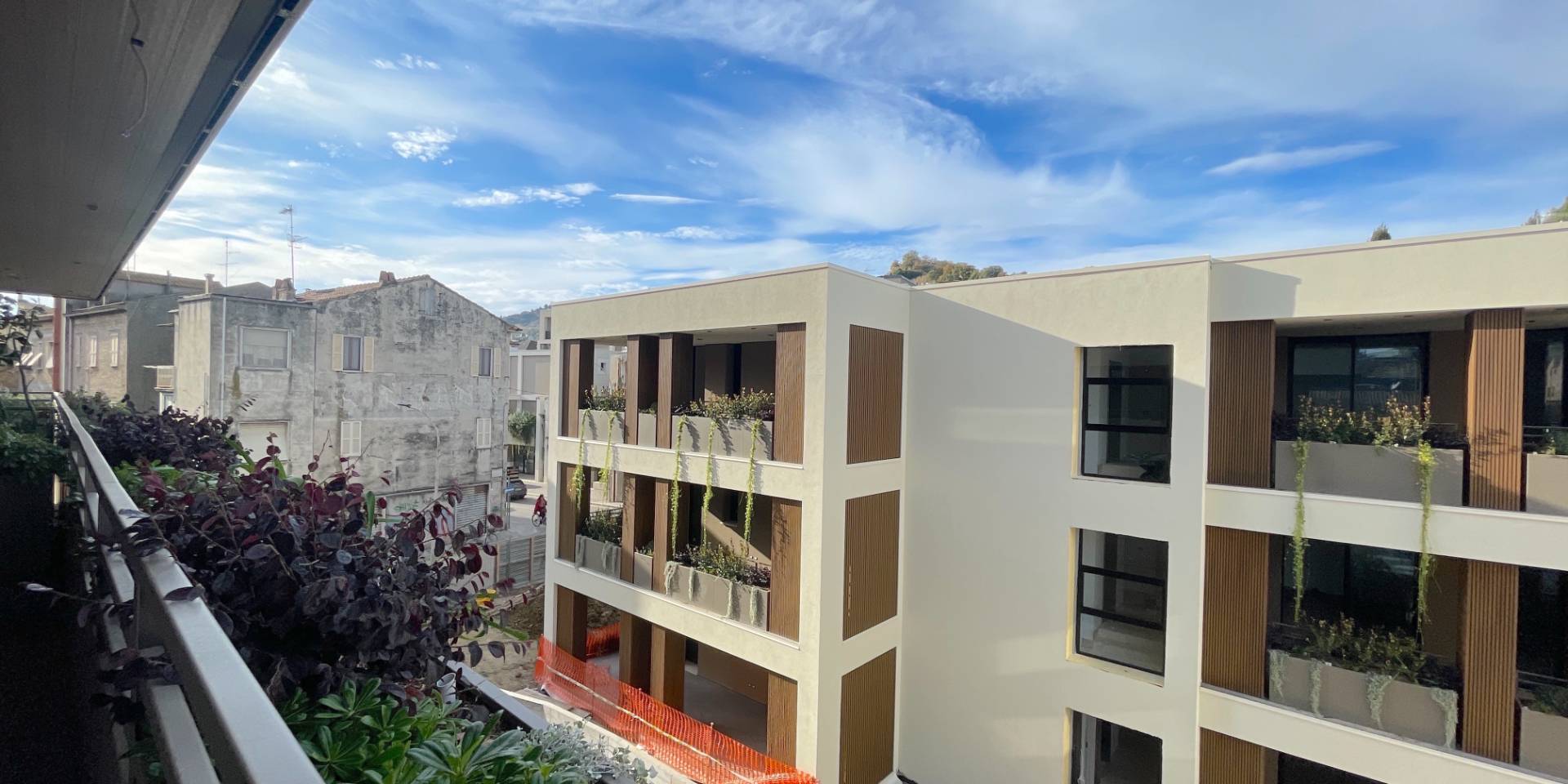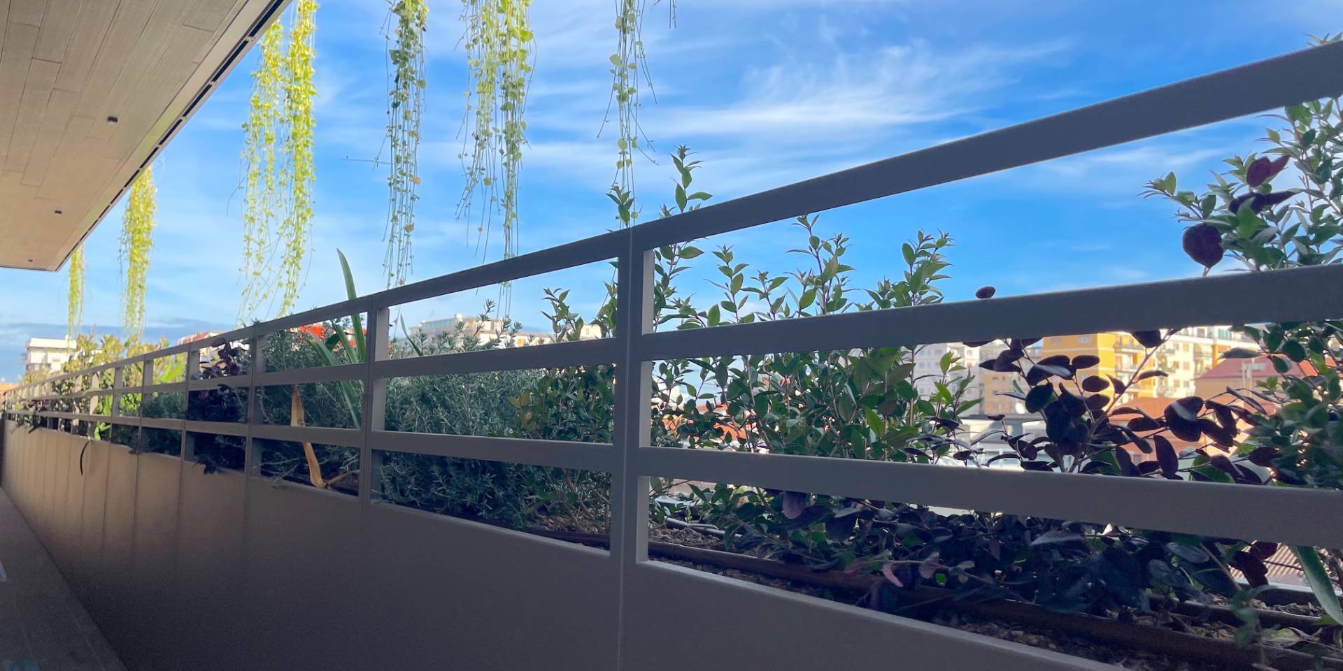 Il complesso residenziale è circondato da un meraviglioso giardino interno e piante su tutte le balconate e logge esterne, con un sistema centrale di irrigazione che utilizza acqua recuperata in accumulo. Inoltre, l'edificio è stato realizzato in classe energetica NZEB (Near Zero Energy Building), con un impianto fotovoltaico centrale da 44 kW e soluzioni progettuali ecocompatibili come il cappotto esterno e l'ottimizzazione dell'irraggiamento naturale.