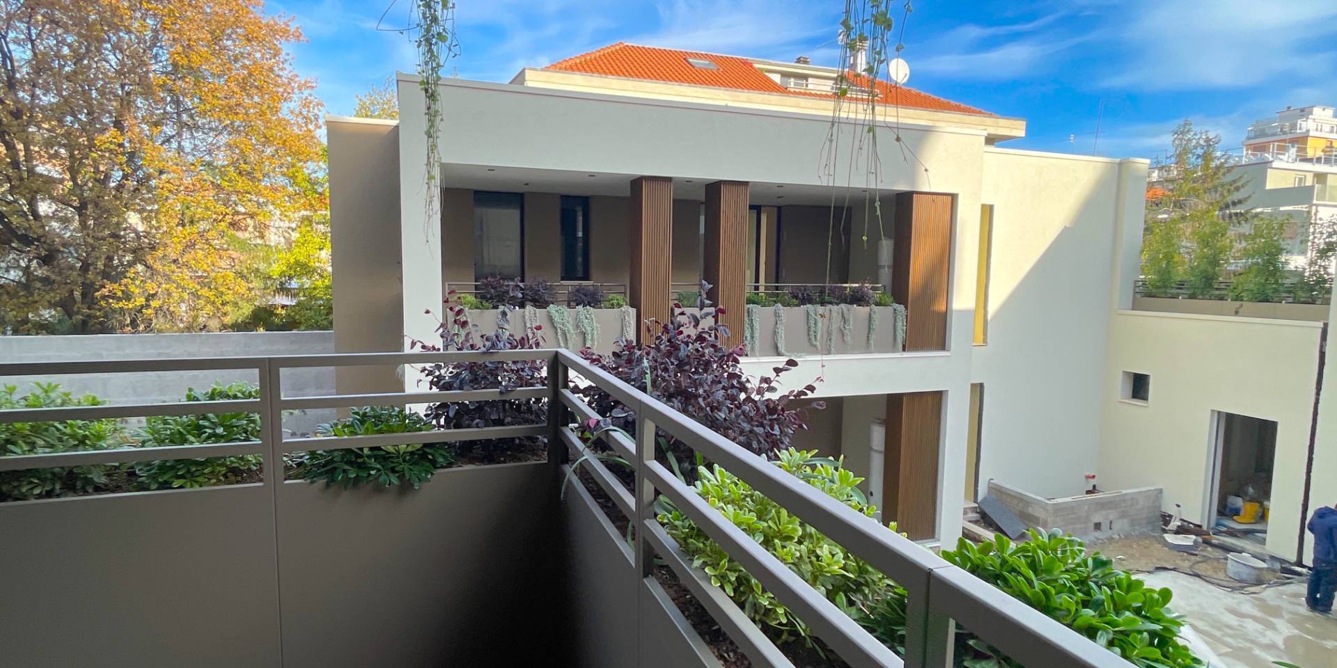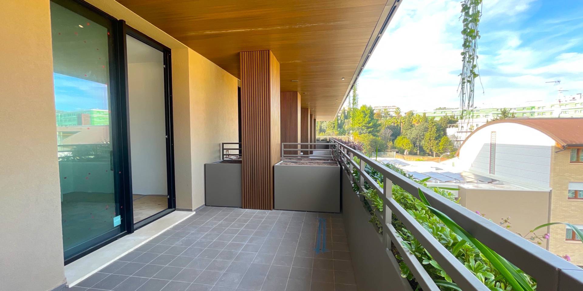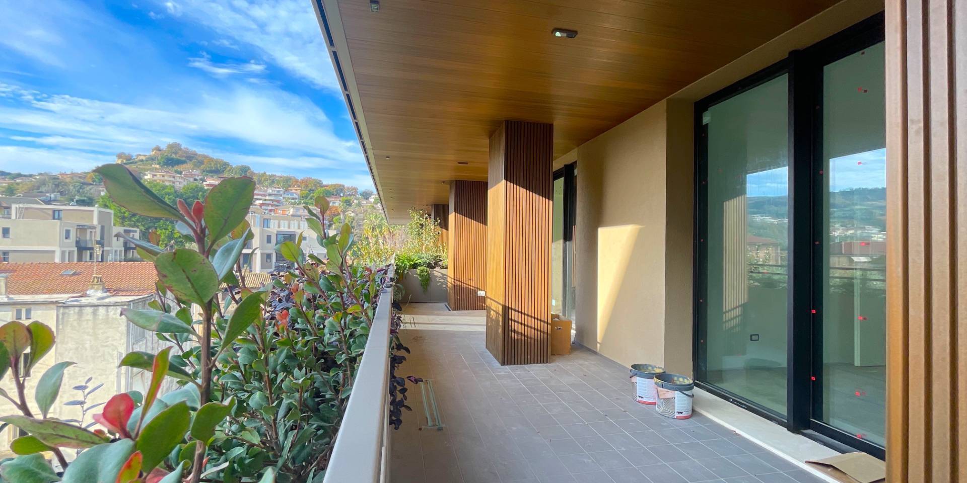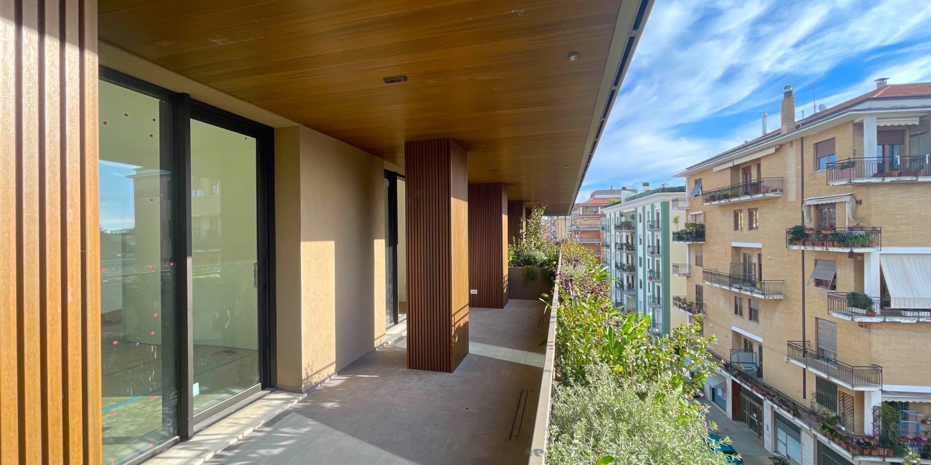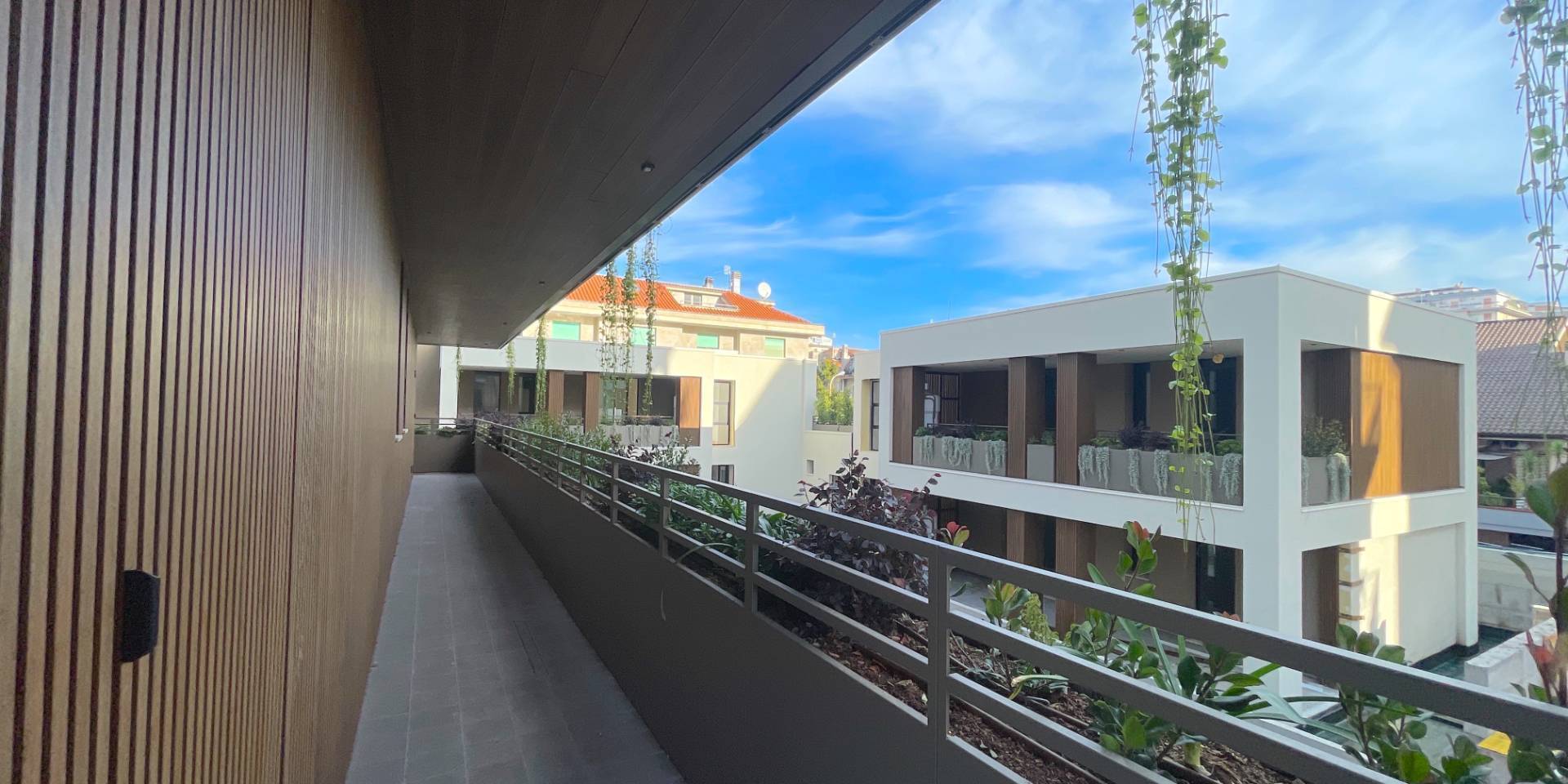 Il complesso residenziale è circondato da un meraviglioso giardino interno e piante su tutte le balconate e logge esterne, con un sistema centrale di irrigazione che utilizza acqua recuperata in accumulo. Inoltre, l'edificio è stato realizzato in classe energetica NZEB (Near Zero Energy Building), con un impianto fotovoltaico centrale da 44 kW e soluzioni progettuali ecocompatibili come il cappotto esterno e l'ottimizzazione dell'irraggiamento naturale.