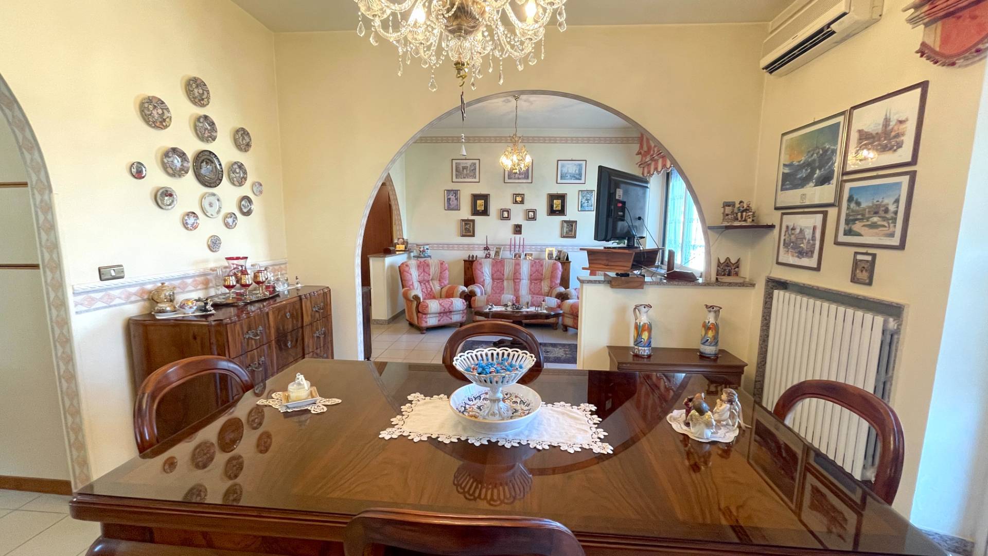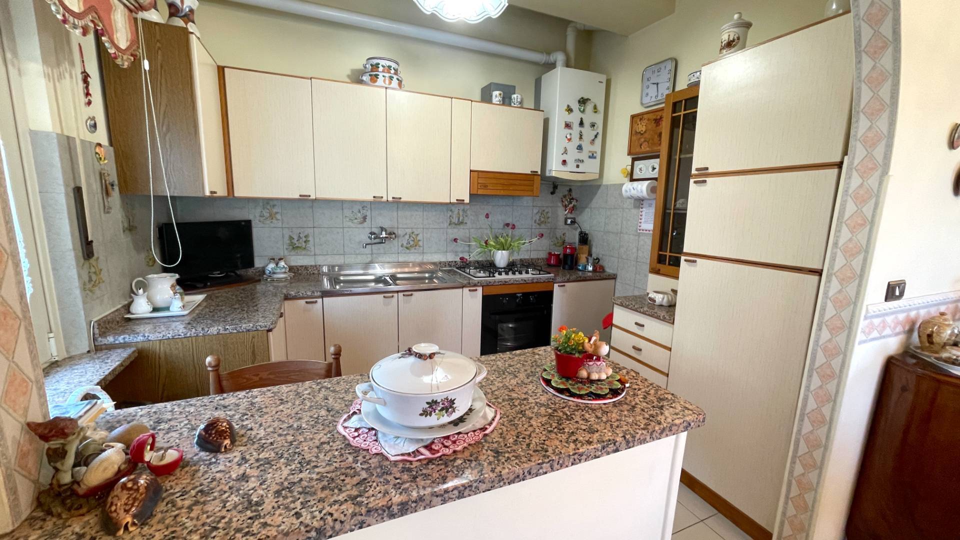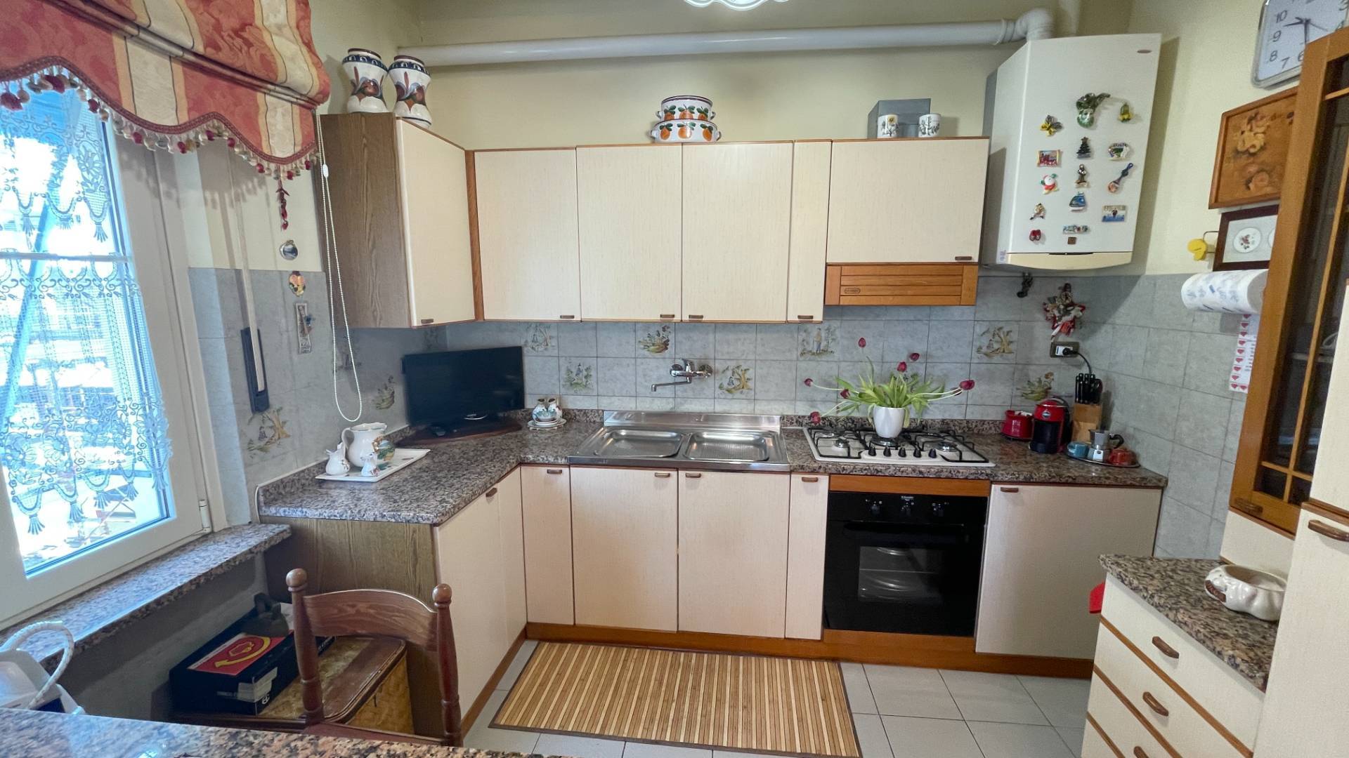 Buono stato di conservazione, con finiture tipiche della sua epoca costruttiva (anni '70) quali pavimentazioni in monocottura e marmittoni, infissi in alluminio nel reparto giorno e legno nel reparto notte - entrambi provvisti di vetri termici - clima nel reparto giorno e nella matrimoniale, impianti a norma.