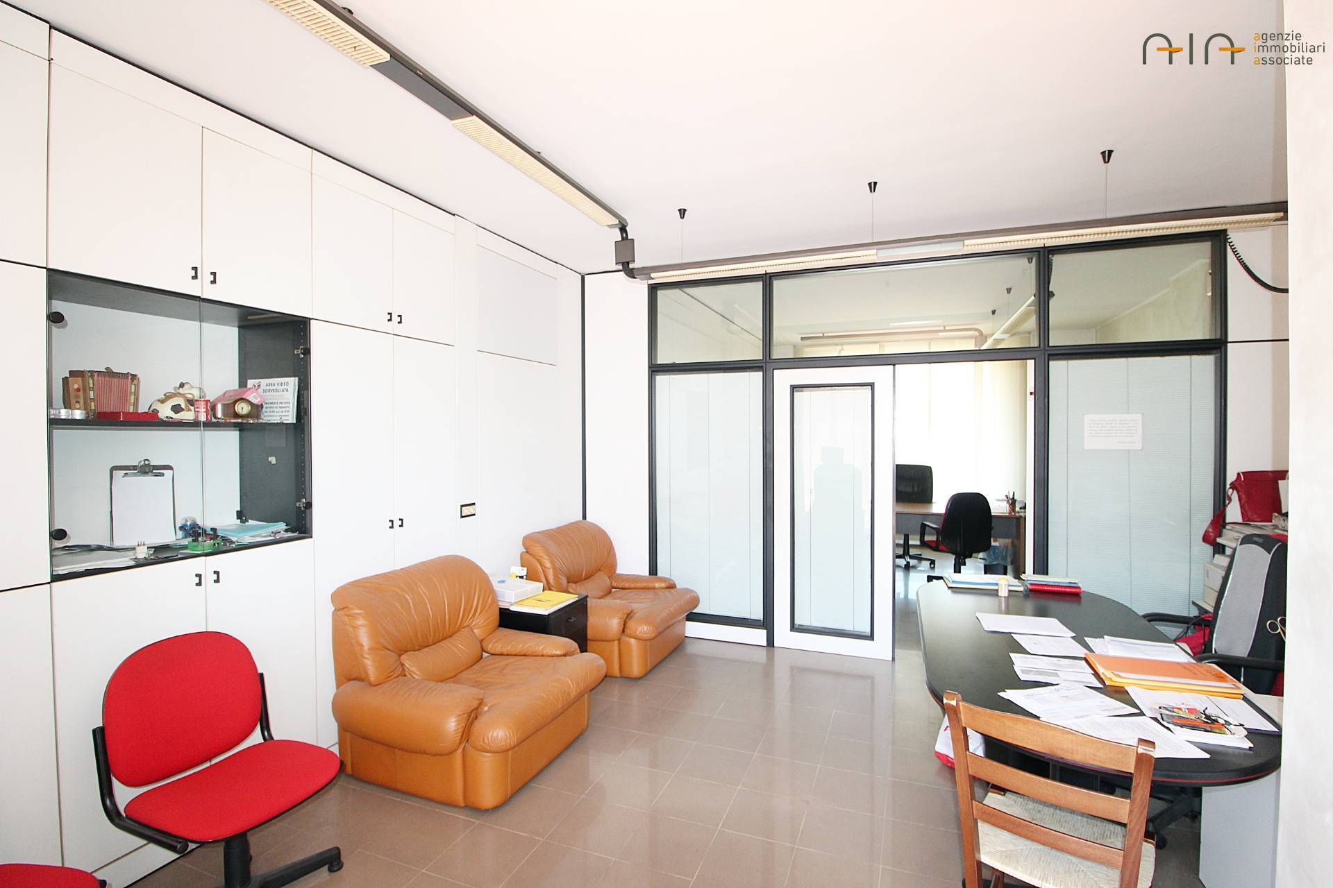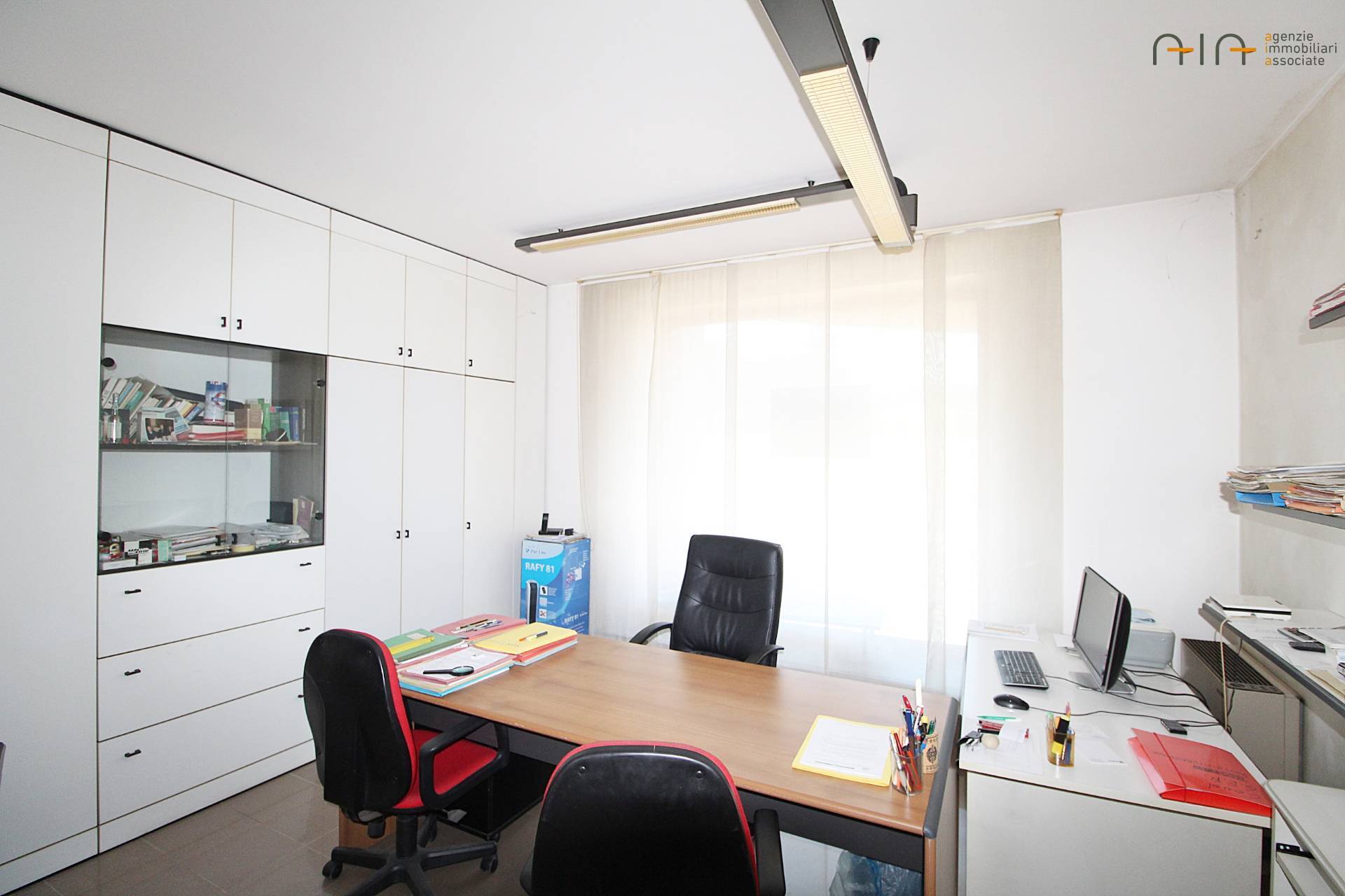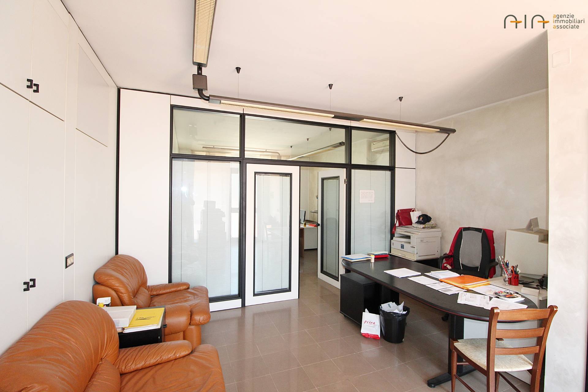 Ufficio delle dimensioni complessive di mq 134 circa sito al piano primo servito da ascensore avente tre ingressi e tre ampie vetrine fronte strada, composto da 6 locali e 2 bagni. Localizzato in posizione centrale all'interno di un fabbricato commerciale/direzionale con ampio parcheggio gratuito a disposizione.