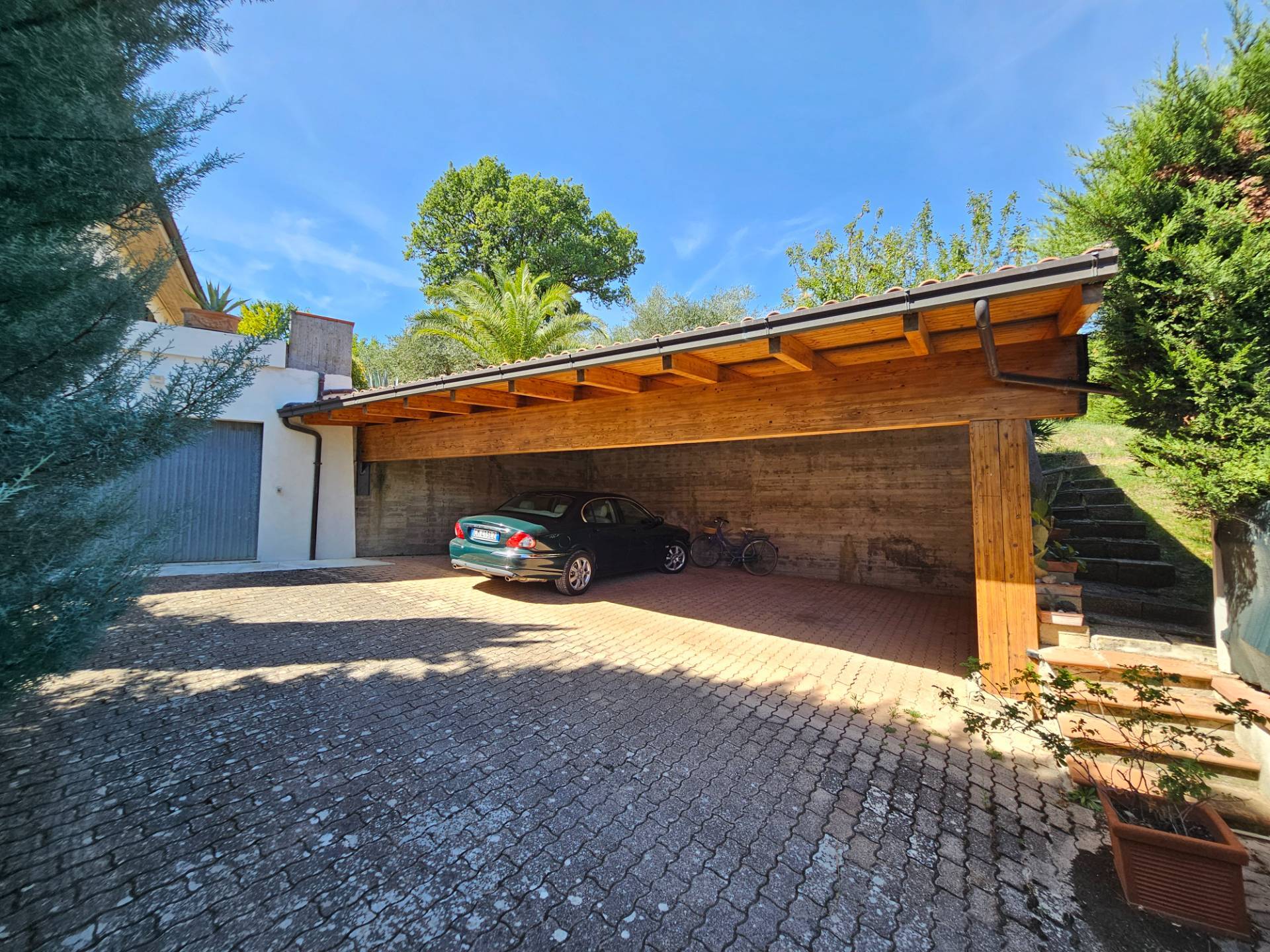 Il giardino dispone anche di un pozzo per l'irrigazione, una cisterna per la raccolta delle acque piovane, un accessorio in muratura per il rimessaggio degli attrezzi da giardino, area parcheggio coperta con struttura in legno per più auto e sistema di videosorveglianza.