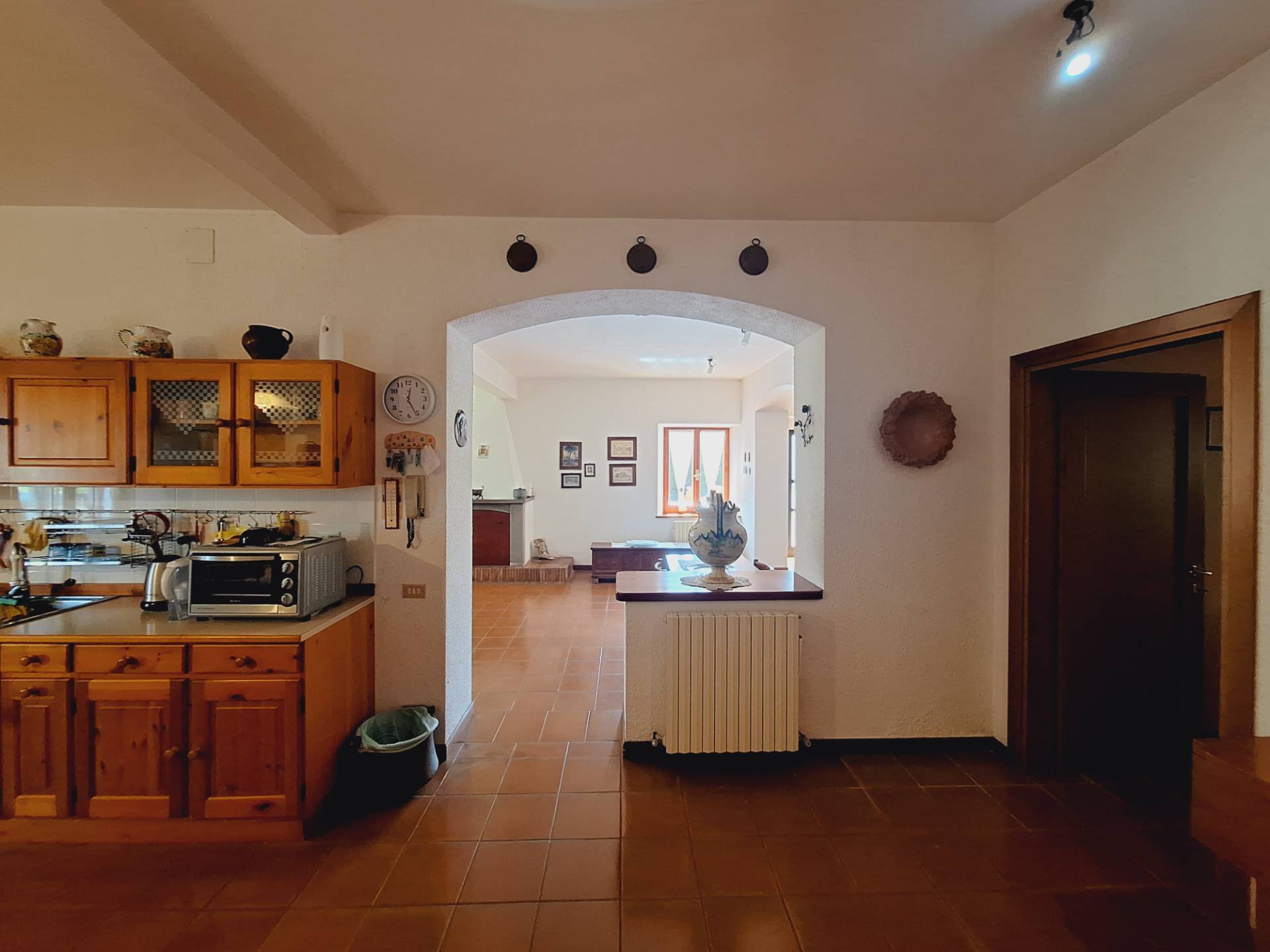 L'edificio si sviluppa su tre piani e dispone al piano terra di un grande soggiorno con camino, spaziosa cucina anch'essa con camino, sala da pranzo, bagno, locale tecnico, ripostiglio e ampio garage.