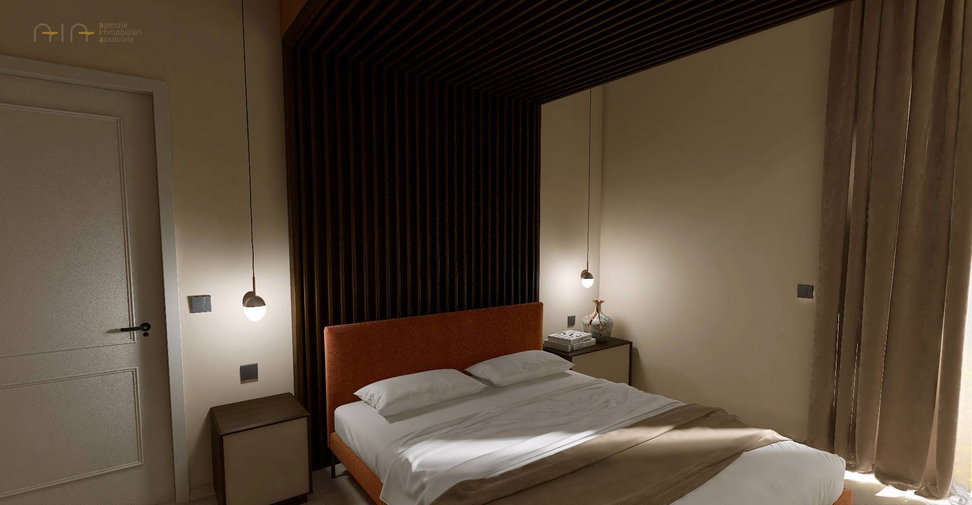 - Ingresso su ampio soggiorno con angolo cottura, due camere, due bagni.