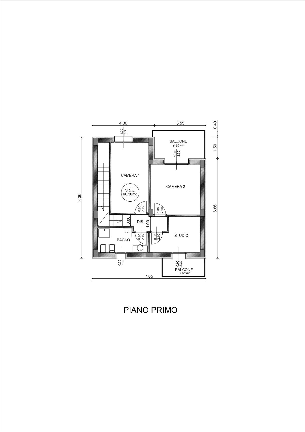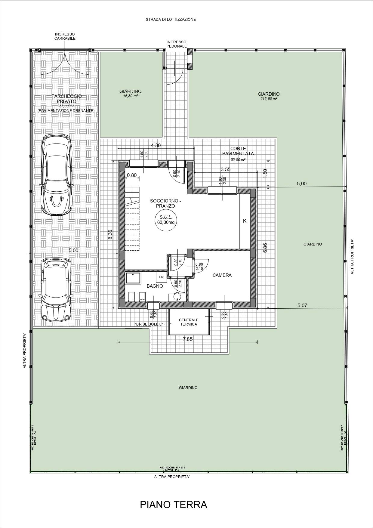 L'ipotesi progettuale prevede la costruzione di un'abitazione di 120 mq disposti su due livelli:
