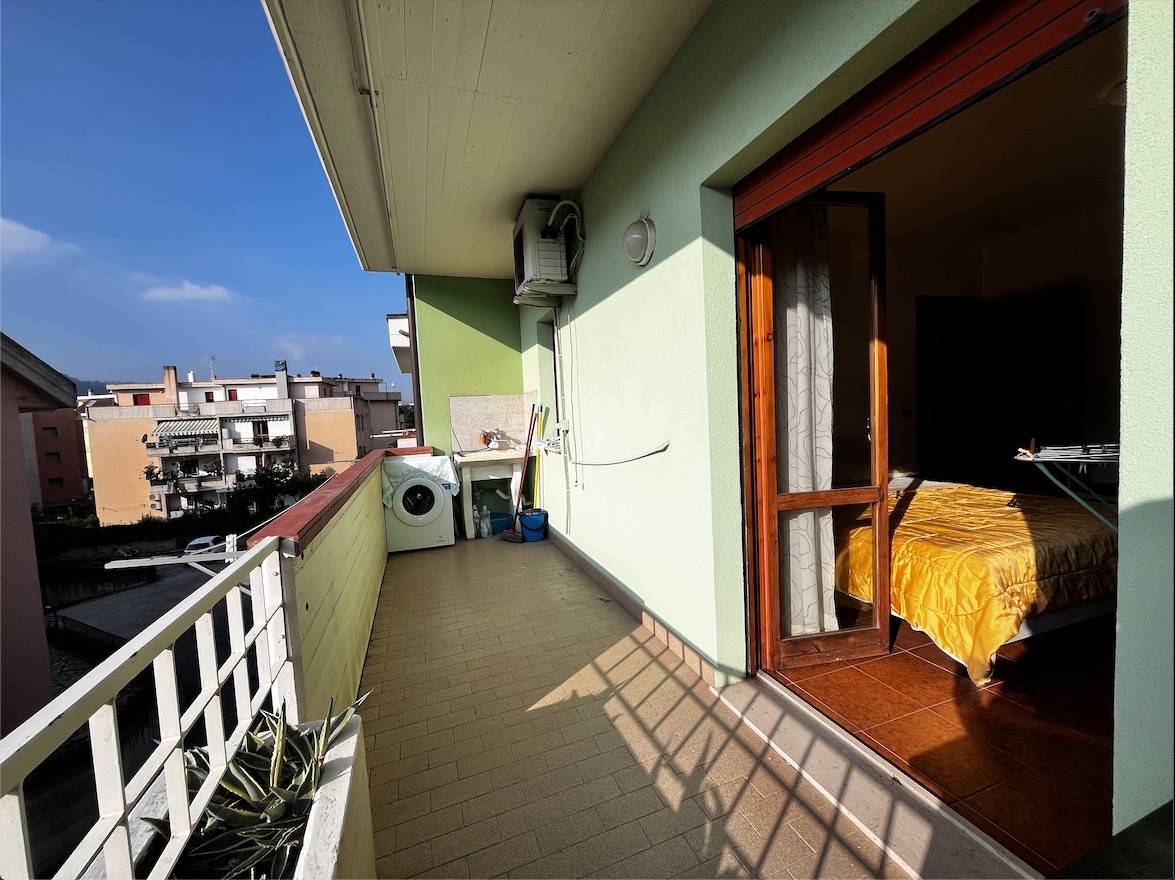Appartamento di circa 105 mq, sito al piano secondo senza ascensore, composto da ingresso su disimpegno, un grande salone con cucina a vista, che ospita un bel camino funzionante, con possibilità di chiusura della stessa; tre camere da letto, di cui una ampia matrimoniale, una grande singola ed una comoda doppia; un ripostiglio; un bel bagno con doccia e finestra, parzialmente ristrutturato. Oltre a un ampio terrazzo con accesso dalla sala, di circa 12 mq, in cui si può soggiornare comodamente; un balcone di circa 8 mq con accesso dalla camera matrimoniale, completo di zona lavanderia e lavetta esterna ed un ulteriore un piccolo balcone di circa 3 mq a servizio della camera singola. L'Appartamento gode di due accessori fondamentali siti al piano seminterrato: un ampio garage di circa 17 mq, accessibile attraverso una serranda avvolgibile elettrica, collegato alla scala condominiale ed una comoda cantina di circa 10 mq.