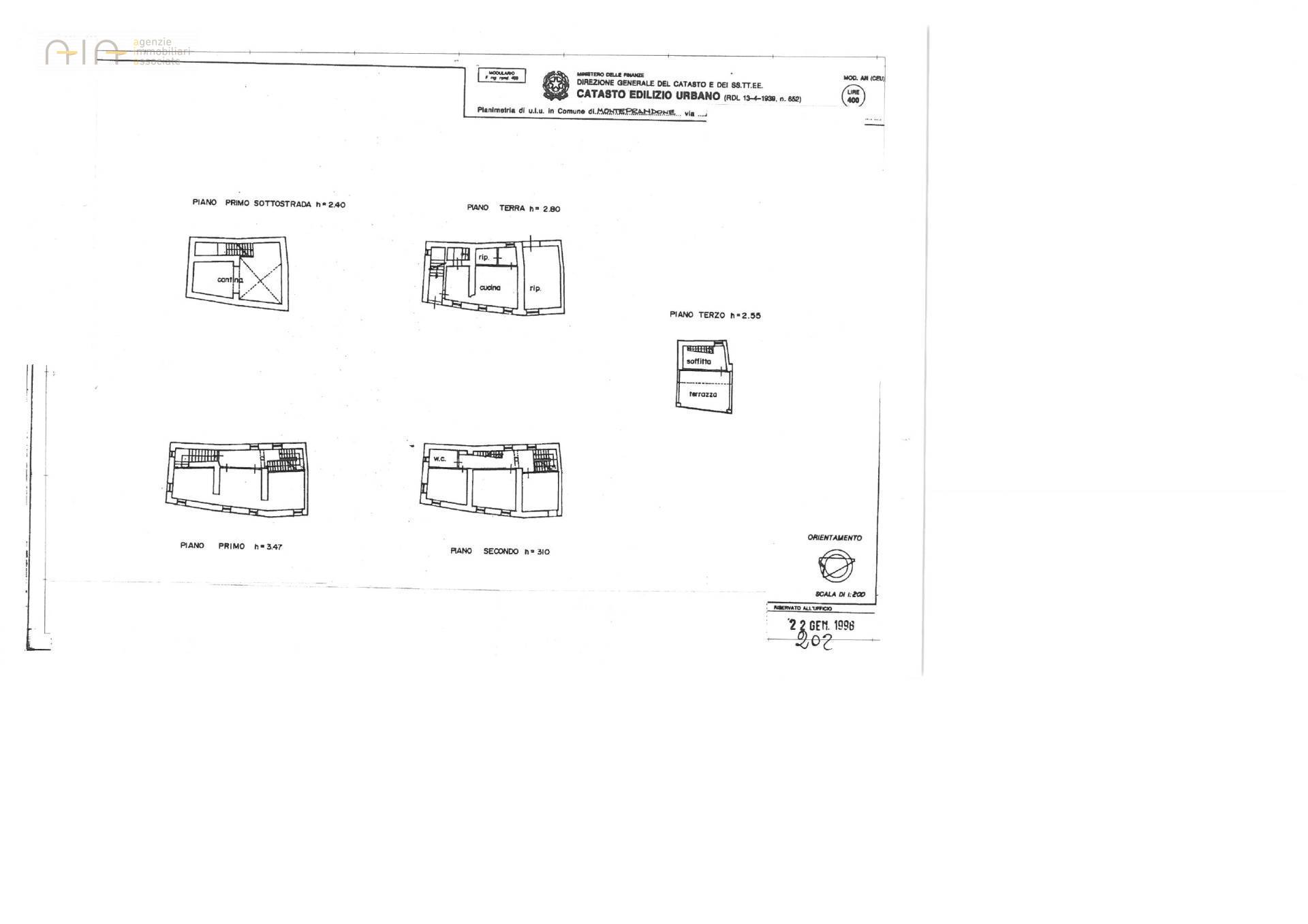 - Piano terra: ingresso anche indipendente, cucina, soggiorno, bagno e camera da letto. Scala di collegamento ai piani superiori.