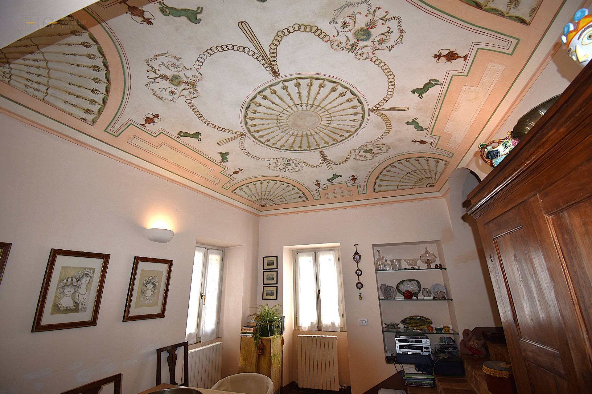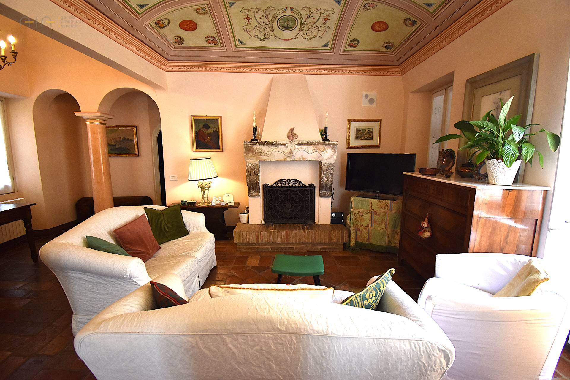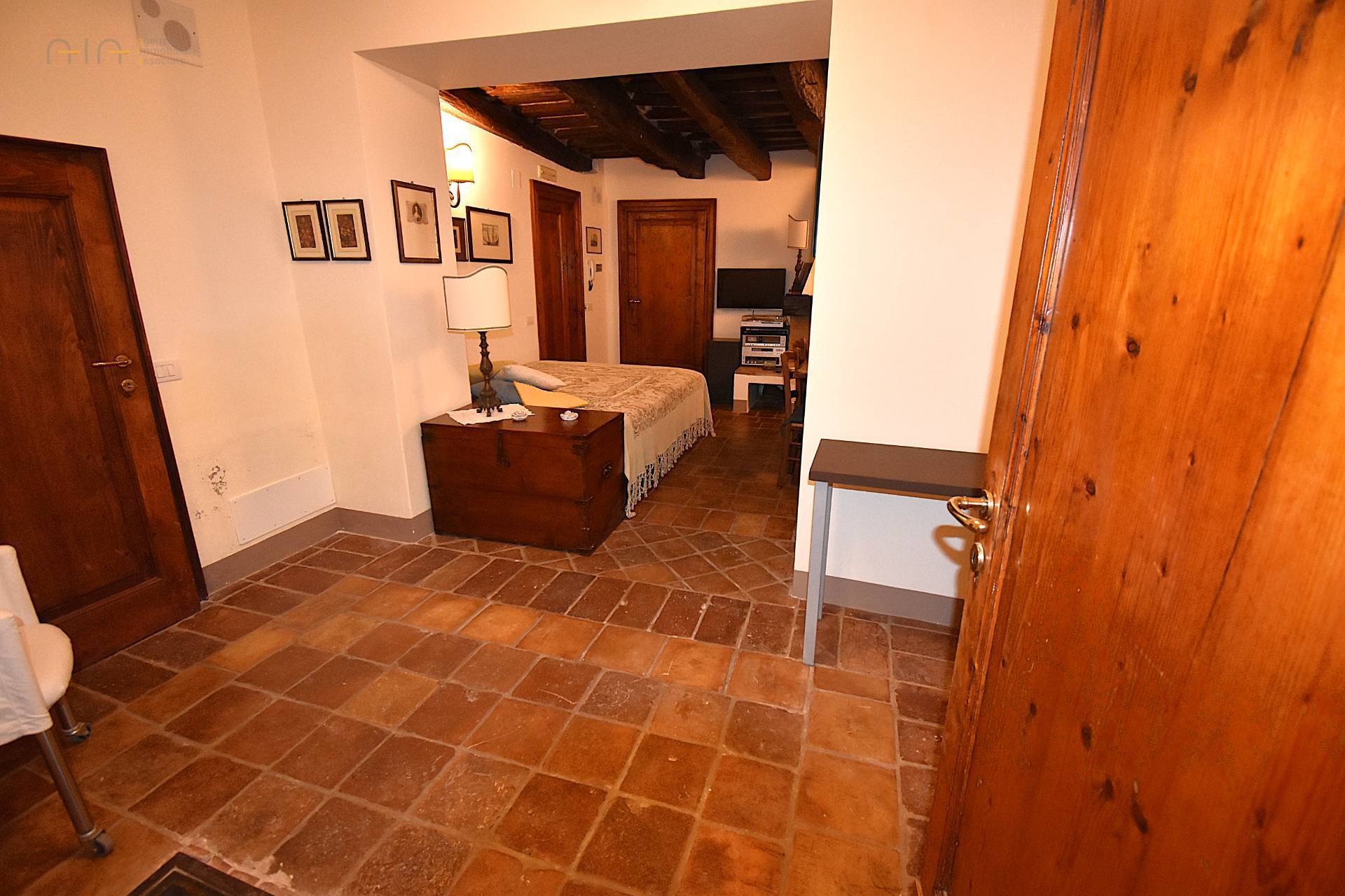 Completamente ristrutturata con grande attenzione conservativa, la proprietà ha mantenuto intatti gli elementi storici più preziosi: travi in legno a vista, pavimenti in pianelle, affreschi originali e camini d'epoca che donano carattere e unicità ad ogni ambiente.