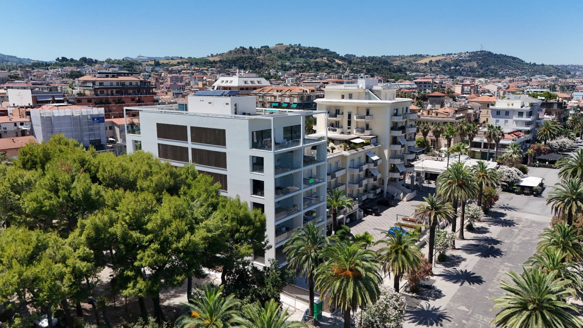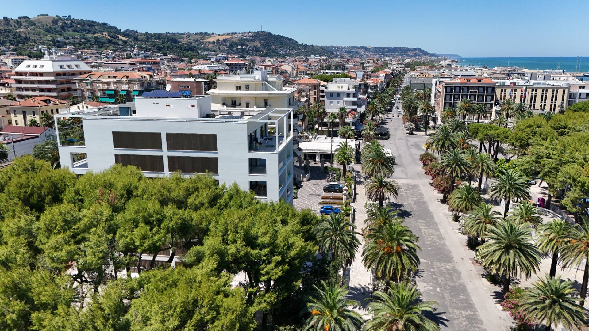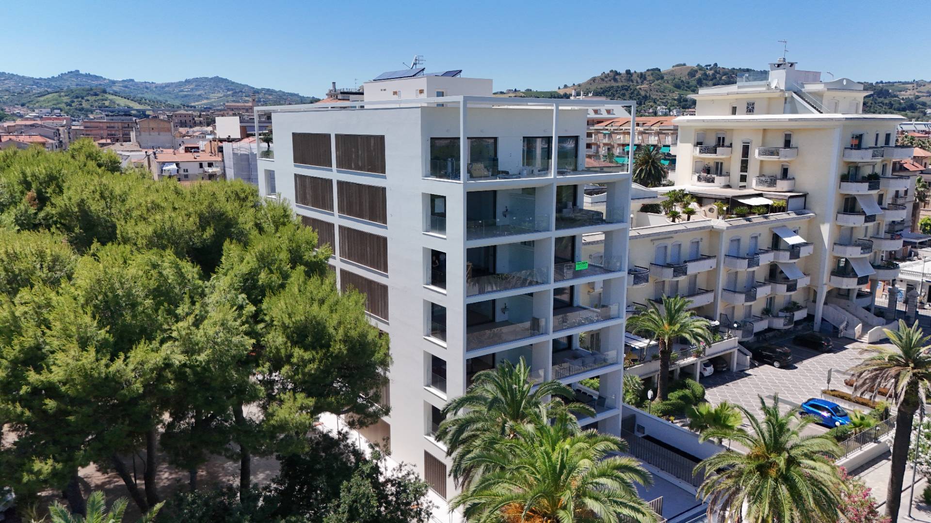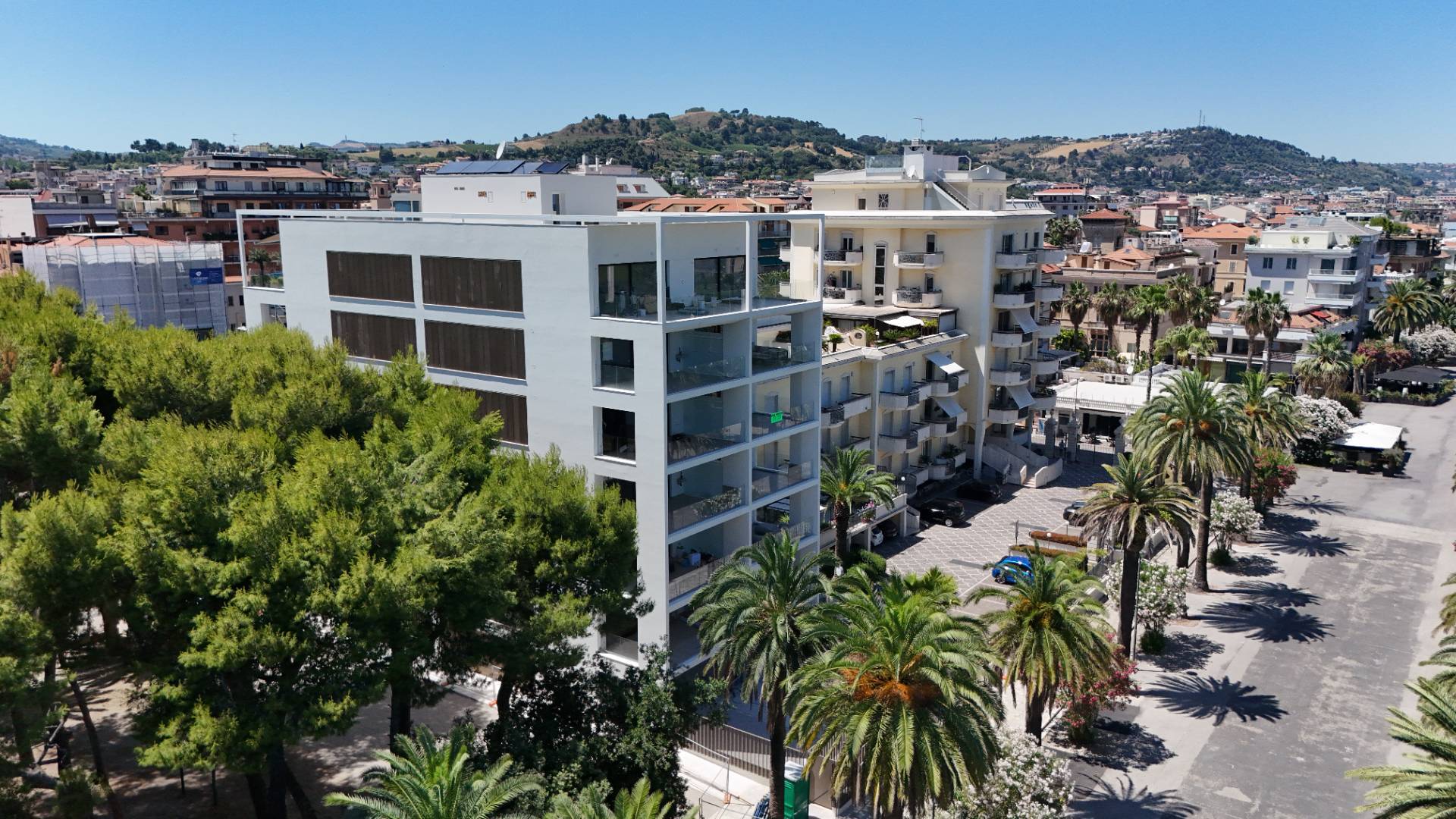 Appartamento per civile abitazione sito al piano quarto ( esposizione Est Nord, fronte mare ) con ascensore, delle dimensioni di 56 m² circa composto da ingresso su corridoio, soggiorno con angolo cottura, una ampia camera da letto matrimoniale, un bagno con doccia e finestra, disimpegno nel reparto notte. L'Appartamento è inoltre fornito di una meravigliosa terrazza coperta di ben 26 m² su cui, grazie all'ampia superficie, aggiunge un eccezionale spazio nel periodo estivo per poter vivere all'aperto. La terrazza si affaccia sul lato verso il mare, godendo di una vista panoramica sulla passeggiata, sulla pineta e sulla rotonda di San Benedetto del Tronto. L'Appartamento viene a venduto completo di un posto auto al piano interrato del medesimo fabbricato, per una grossa autovettura.