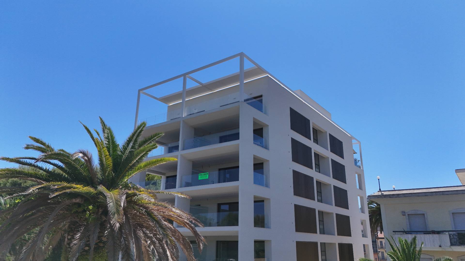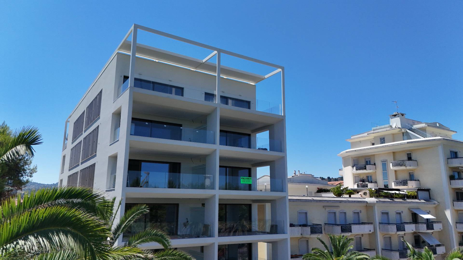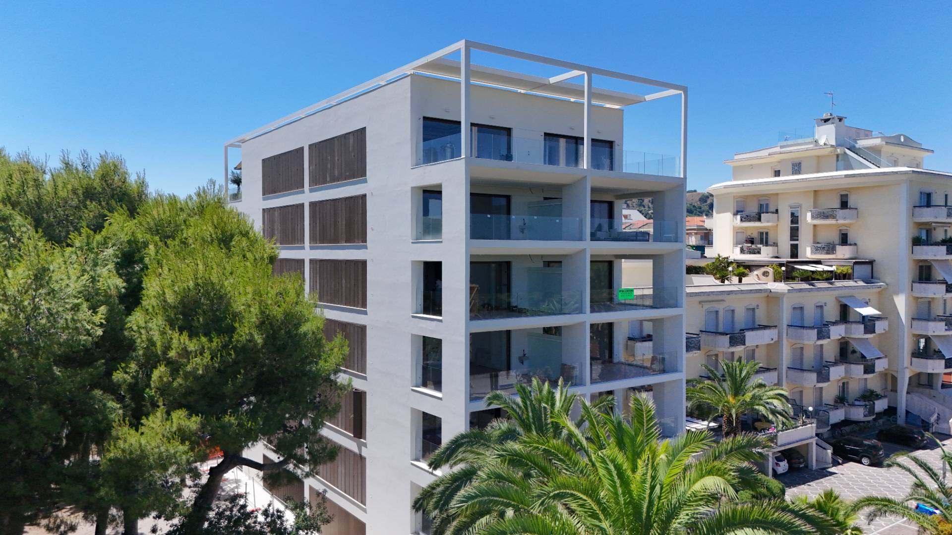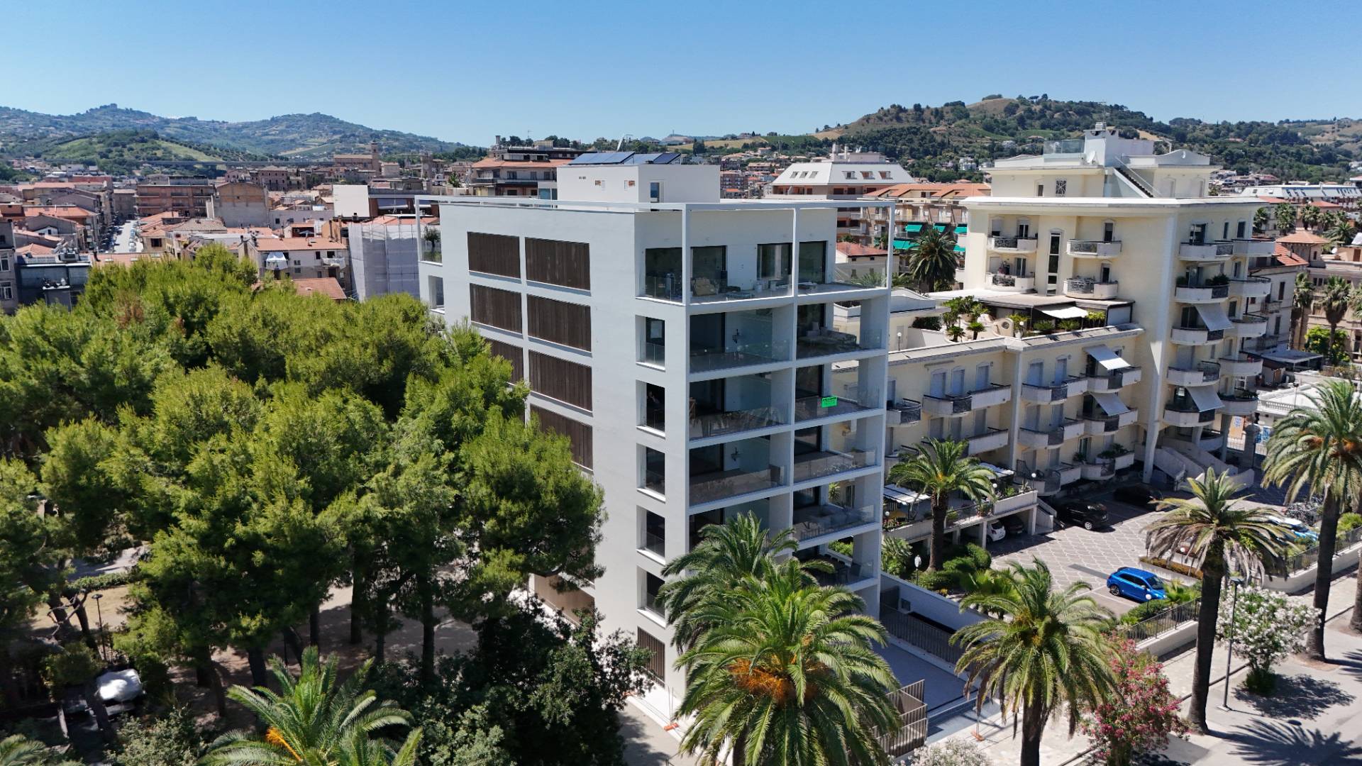 Appartamento per civile abitazione sito al piano quarto ( esposizione Est Nord, fronte mare ) con ascensore, delle dimensioni di 56 m² circa composto da ingresso su corridoio, soggiorno con angolo cottura, una ampia camera da letto matrimoniale, un bagno con doccia e finestra, disimpegno nel reparto notte. L'Appartamento è inoltre fornito di una meravigliosa terrazza coperta di ben 26 m² su cui, grazie all'ampia superficie, aggiunge un eccezionale spazio nel periodo estivo per poter vivere all'aperto. La terrazza si affaccia sul lato verso il mare, godendo di una vista panoramica sulla passeggiata, sulla pineta e sulla rotonda di San Benedetto del Tronto. L'Appartamento viene a venduto completo di un posto auto al piano interrato del medesimo fabbricato, per una grossa autovettura.
